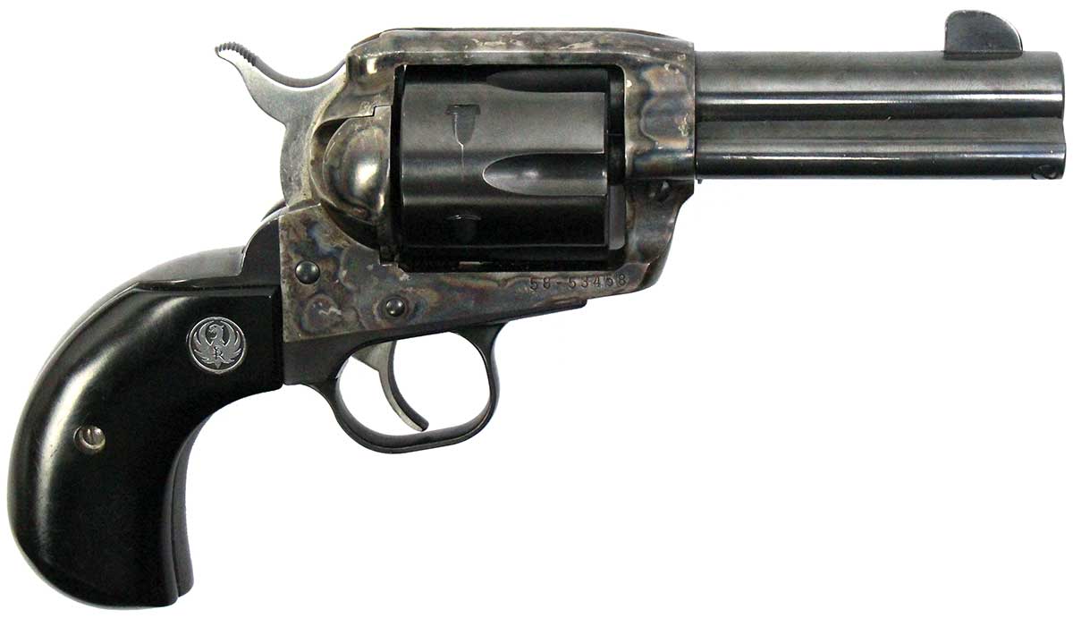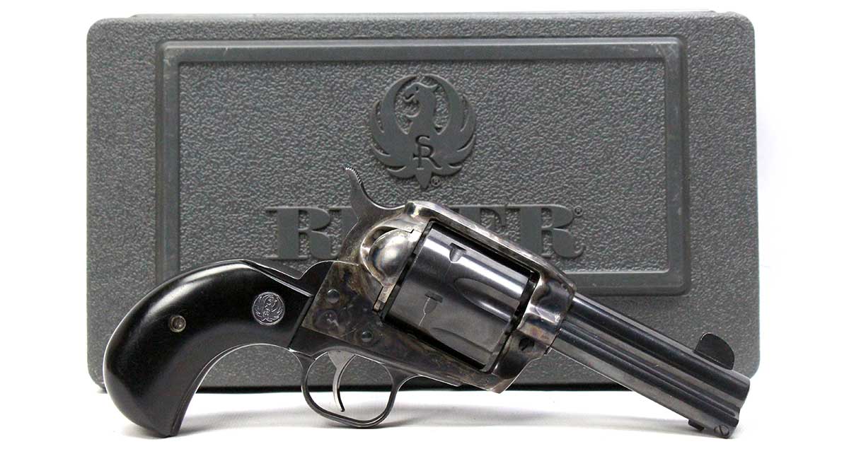 This is a used Ruger Birds Head Vaquero revolver chambered in 45 Long Colt. It features a 3.75-inch barrel, 6-round cylinder, fixed sights, transfer bar safety, wood bird's head grips, and case color finish. Includes factory box and instruction manual. Overall, this Ruger is in good condition with normal use cylinder turn lines and some handling wear on the frame. This would be a good choice for recreational target shooting. Buy online today!