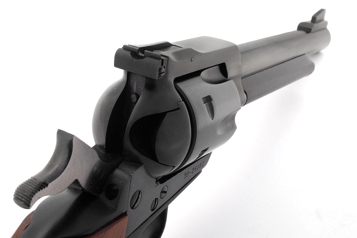 This a collectible Ruger Blackhawk revolver chambered in 357 Magnum. It features a 6.5-inch barrel, blued finish, wood grips, and 6-round cylinder. The serial number indicates this revolver was manufactured in 1970. This early model features a 3-screw frame, 4-click hammer, no transfer bar safety, and does not have the warning stamped on the underside of the barrel. This gun is in exceptional condition with and excellent bore. The cylinder timing is good and the lockup is strong. There is no wear to the bluing and a very light turn ring. The wood grips are in near perfect shape. This revolver would make a great addition to a Ruger handgun collection. Buy online today!