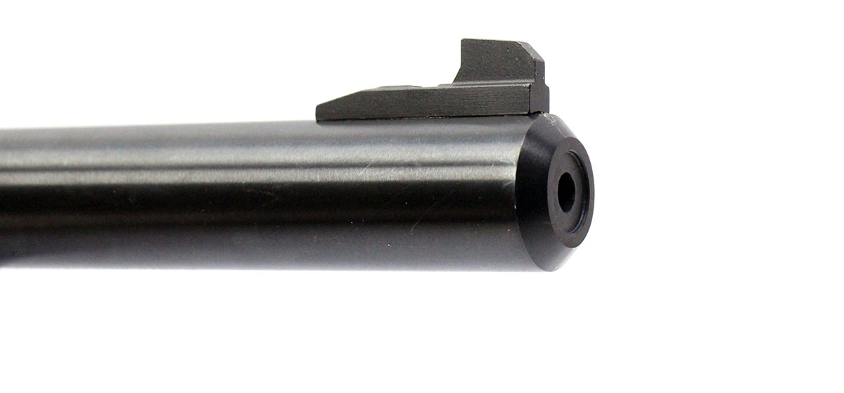 This is a used Ruger Mark IV 22/45 pistol chambered in 22 Long Rifle. It features a 5.5-inch heavy barrel, 10-round magazine, adjustable rear sight, ambidextrous thumb safety, magazine disconnect safety, rubber grips, and factory drilled and tapped receiver. Overall, this Ruger is in good condition with some handling wear on the barrel. This would be a good choice for target shooting. Buy online today!