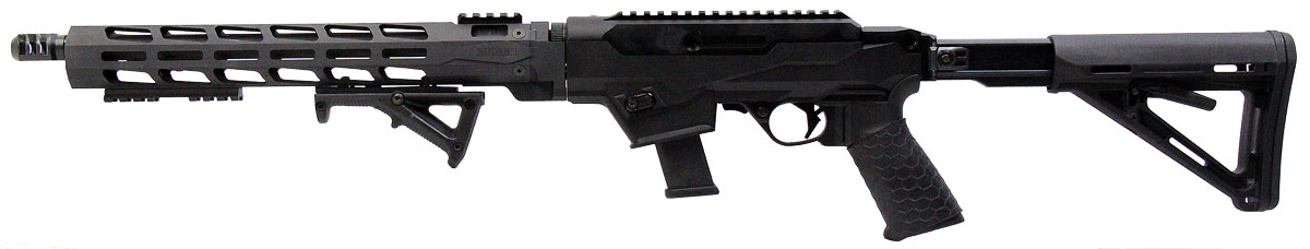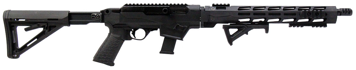This is a used Ruger PC Carbine chambered in 9mm. It features a 16-inch threaded barrel, muzzle brake, 15-round Glock magazine, cross-bolt safety, picatinny optics rail, M-LOK handguard, and tool-less takedown. Overall, this Ruger is in good condition with handling marks on the receiver and handguard. Bore condition is good with crisp rifling. This would be a good choice for home defense. Buy online today!