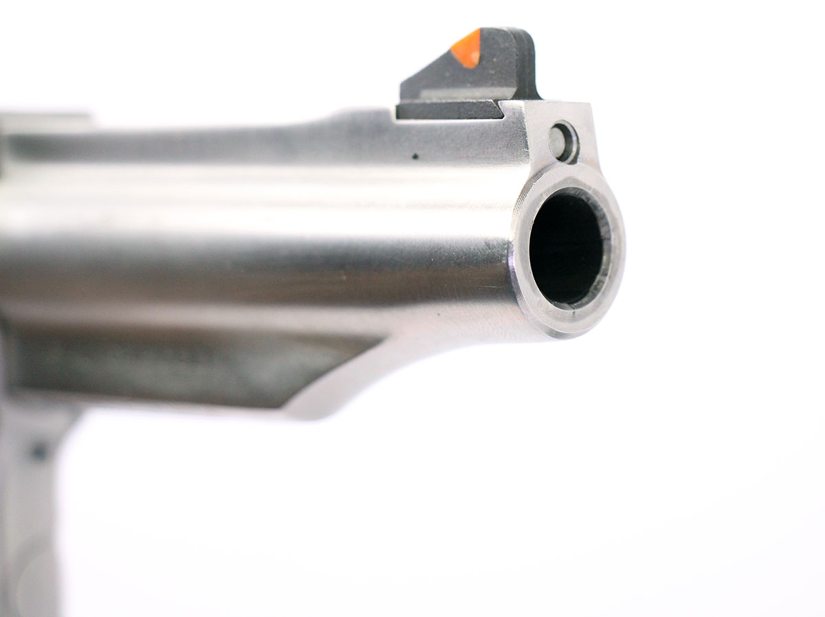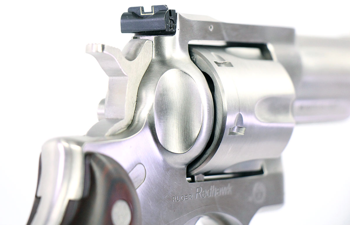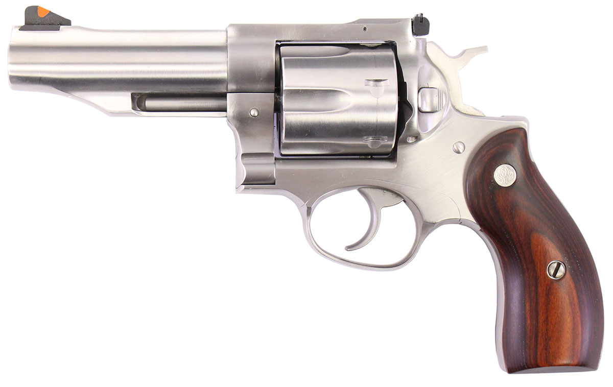 This is a used Ruger Redhawk chambered in 45 Long Colt and 45 ACP (with the use of included moon clips). It features a 4-inch barrel, 6-round cylinder, adjustable rear sight, red ramp front sight, wood grips, and stainless finish. Includes Ruger box and three moon clips. Overall, this Ruger is in good condition with normal cylinder draglines. This would be a good choice for target shooting. Buy online today!