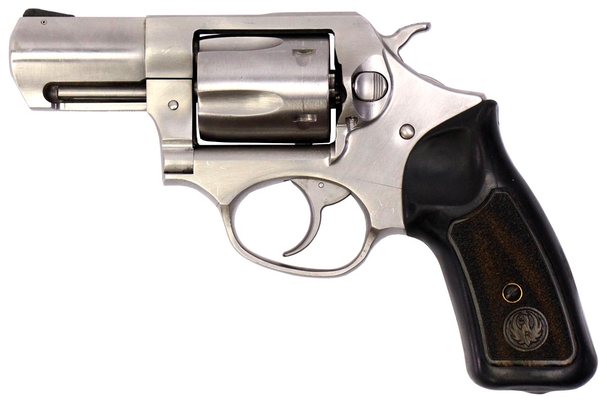 This is a used Ruger SP101 revolver chambered in 357 Magnum. It features a 2.25-inch barrel, 5-round cylinder, fixed sights, rubber grips with wood inserts, and stainless finish. Overall, this Ruger is in good condition with normal use cylinder turn lines and handling wear on the frame. This would be a good choice for concealed carry. Buy online today!