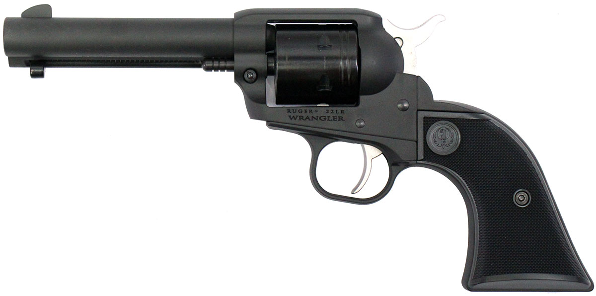 This is a used Ruger Wrangler revolver chambered in 22 Long Rifle. It features a 4.62-inch barrel, 6-round cylinder, transfer bar safety, fixed sights, black Cerakote finish, plastic grips, and alloy frame. Includes factory box and manual. Overall, this Ruger is in good condition with normal cylinder draglines. This would be a good choice for target shooting. Buy online today!