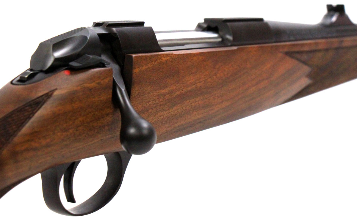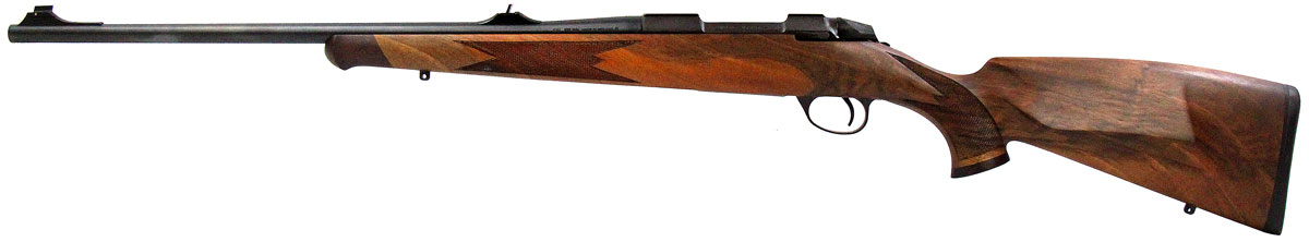 This is a used Sako 85-S Bavarian rifle chambered in 308 Winchester. It features a 22-inch barrel, 5-round detachable magazine, dovetail receiver rail, sling studs, open sights, and checkered walnut stock with Schnabel forend. Overall, this rifle is in good condition with some handling wear on the barrel. Bore condition is good with crisp rifling. This would be a good choice for big game hunting. Buy online today!
