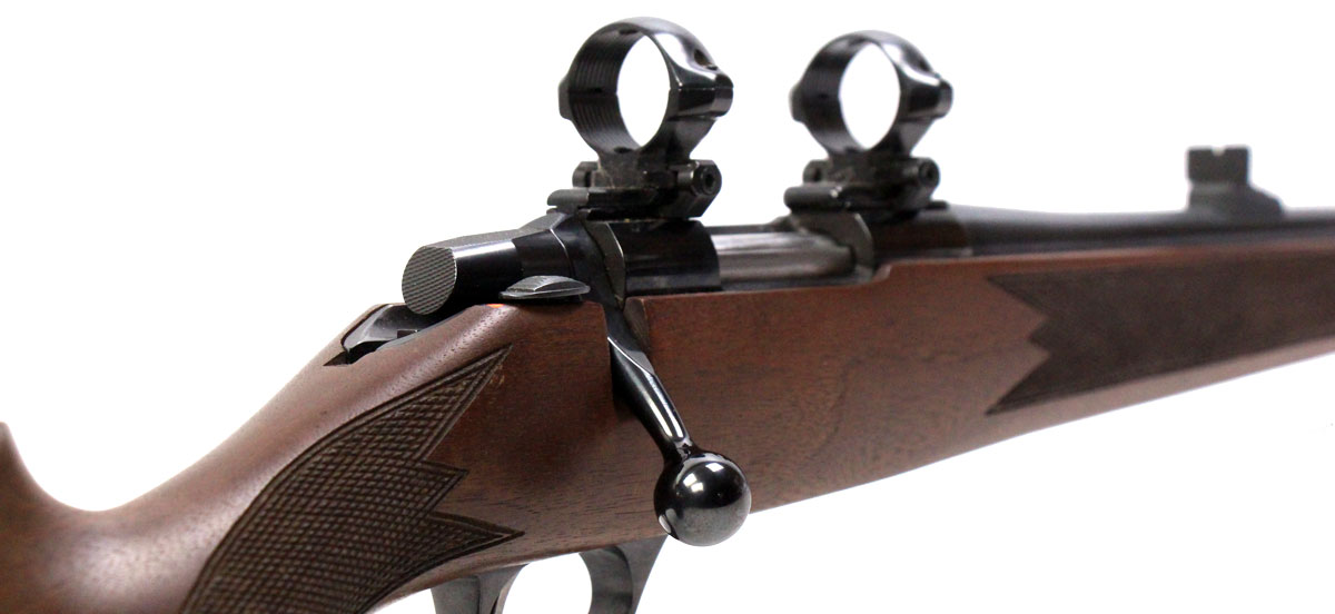This is a used Sako A1 rifle chambered in 223 Remington. It features a 24-inch barrel, 5-round hinged floorplate magazine, adjustable rear sight, hooded front sight, and 1-inch scope rings. Overall, this rifle is in good condition with some handling wear on the stock. Bore condition is good with crisp rifling. This would be a good choice for varmint hunting or target shooting. Buy online today!