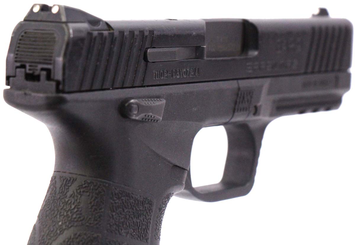 This is used SAR USA SAR9 pistol chambered in 9mm. It features a 4.4-inch barrel, one 17-round magazine, fixed sights, ambidextrous thumb safety, and accessory rail. Overall, this pistol is in good condition with normal use wear on the slide and barrel. This would be a good choice for home defense. Buy online today!