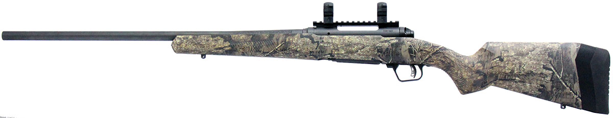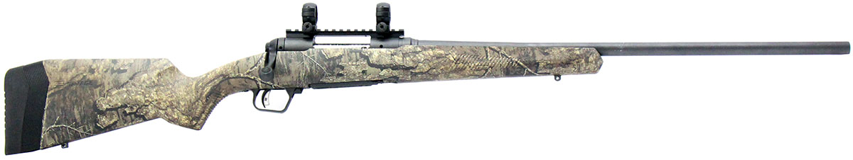 This is a used Savage 110 rifle chambered in 300 Winchester Short Magnum. It features a 24-inch barrel, 3-round magazine, 1-inch rings, sling studs, tang safety, synthetic stock, Accu-trigger, and camo stock. Overall, this Savage is in good condition with some handling wear on the barrel. Bore condition is good with crisp rifling. This would be a good choice for big game hunting. Buy online today!