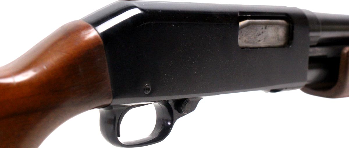 This is a used Sears Model 200 shotgun chambered in 12 gauge. It features a 28-inch barrel, 2.75-inch chamber, 14-inch length of pull, cross-bolt safety, and fixed modified choke. Overall, this shotgun is in good condition with significant finish wear throughout the barrel and handling wear on the stock. This would be a good choice for hunting. Buy online today!