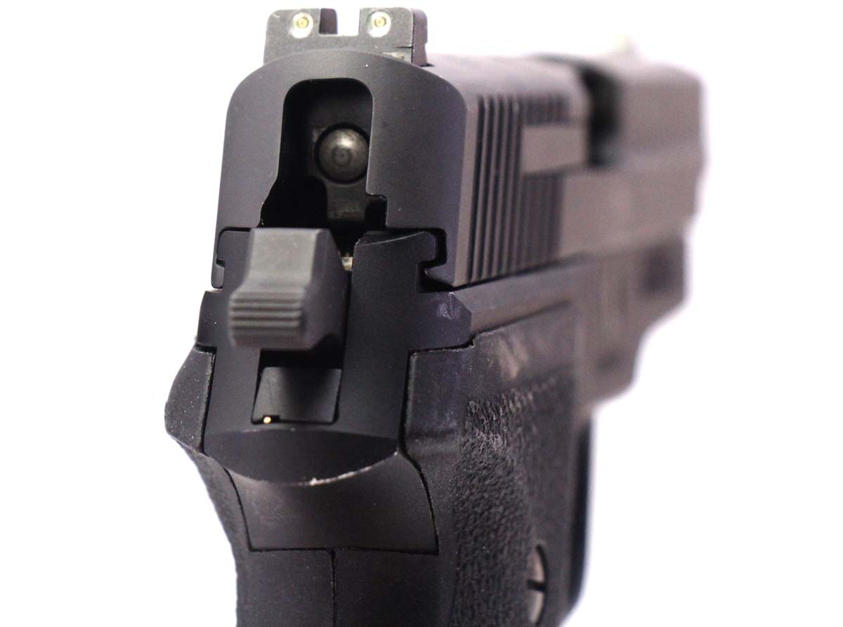 This is a used Sig Sauer M11-A1 pistol chambered in 9mm. It features a 3.9-inch barrel, 15-round magazine, night sights, single/double action trigger, and decocker. Includes one magazine. Overall, this pistol is in good condition with normal use wear on the slide and barrel. This would be a good choice for concealed carry. Buy online today!