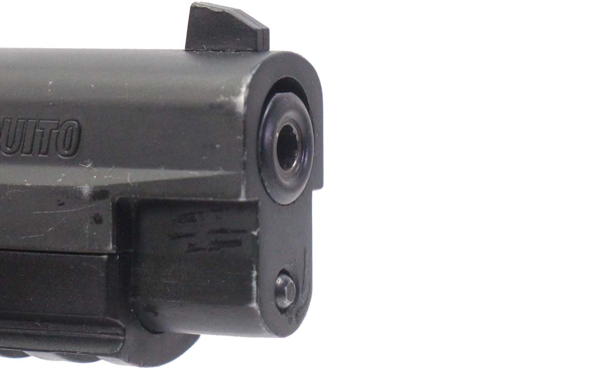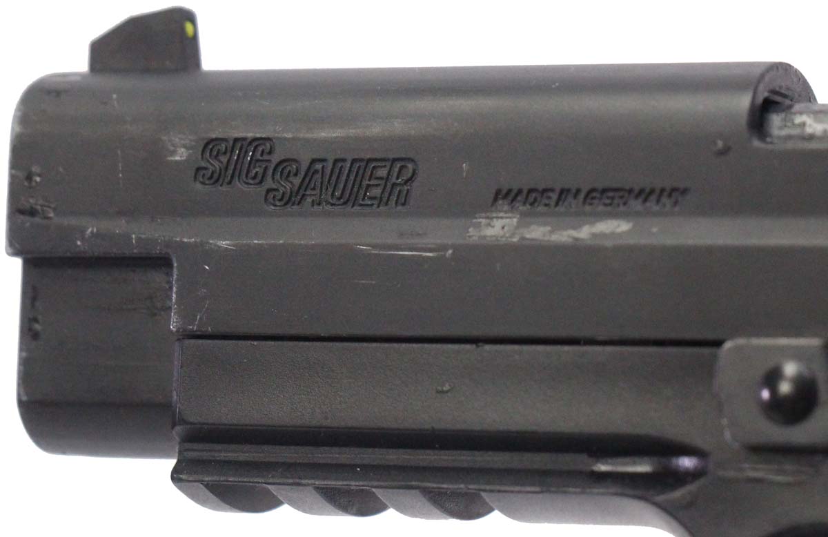 This is a used Sig Sauer Mosquito pistol chambered in 22 Long Rifle. It features a 4-inch barrel, 10-round magazines, adjustable rear sight, ambidextrous thumb safety, polymer frame, and accessory rail. Includes factory box and two magazines. Overall, this pistol is in good condition with normal use wear on the slide and barrel. This would be a good choice for target shooting. Buy online today!