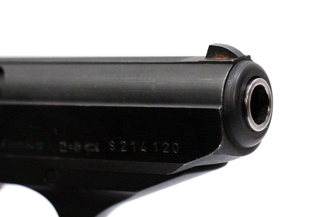This is a used Sig Sauer P232 pistol chambered in 380 ACP. It features a 3.6-inch barrel, 7-round magazine, fixed sights, decocker, polymer grips, and heel magazine release. Overall, this Sig is in good condition with normal wear on the slide and barrel. There is a patch of surface corrosion near the front sight. The slide is marked "Made in Germany" on the left side. Based on date code "KJ", this pistol was manufactured in 1998. This would be a good choice for concealed carry. Buy online today!