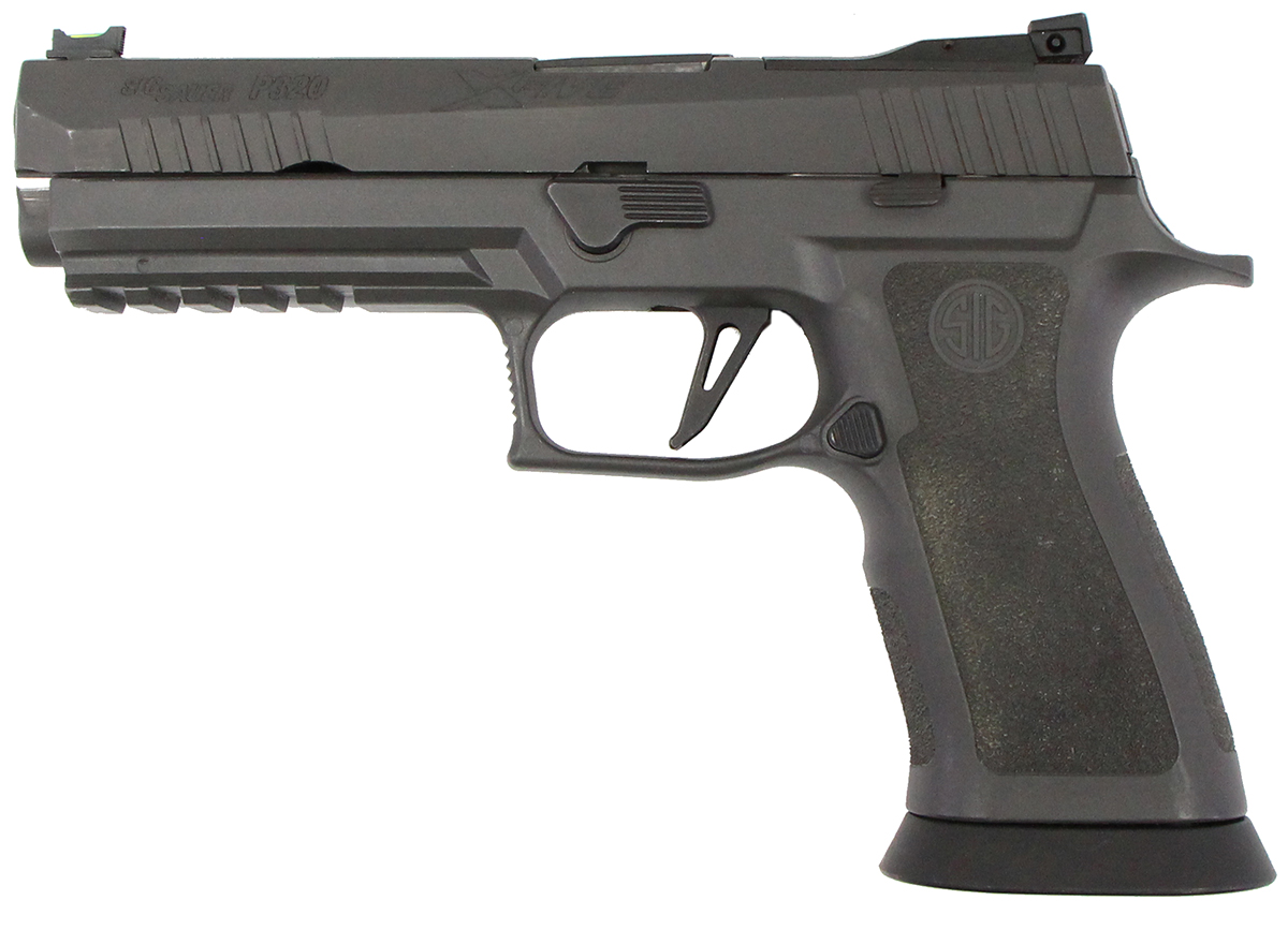 This is a used Sig Sauer P320 X-Five Legion pistol chambered in 9mm. It features a 5-inch barrel, 17-round magazines, fiber optic front sights, adjustable rear sight, tungsten/polymer grip module, accessory rail, and flared magwell. Includes box and three magazines. Overall, this Sig is in good condition with normal use finish wear on the barrel, slide, and frame. This would be a good choice for target shooting. Buy online today!