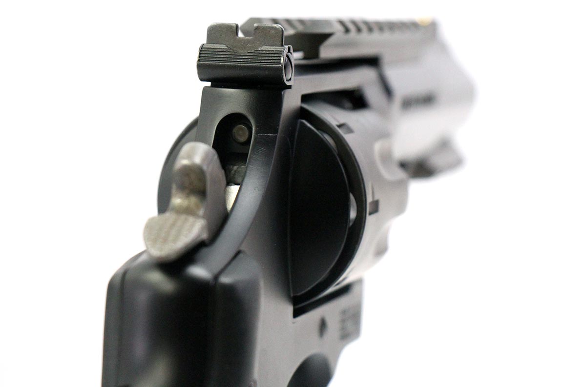 This is a used Smith & Wesson Model 327 TRR8 Performance Center revolver chambered in 357 Magnum. It features a 5-inch barrel, 8-round cylinder cut for moon clips, Scandium frame, adjustable rear sight, picatinny optic rail, accessory rail, rubber grips, and internal lock. Includes factory box, manual, internal lock keys, and three moon clips. Overall, this revolver is in good condition with normal use cylinder turn lines. This would be a good choice for target shooting or home defense. Buy online today!