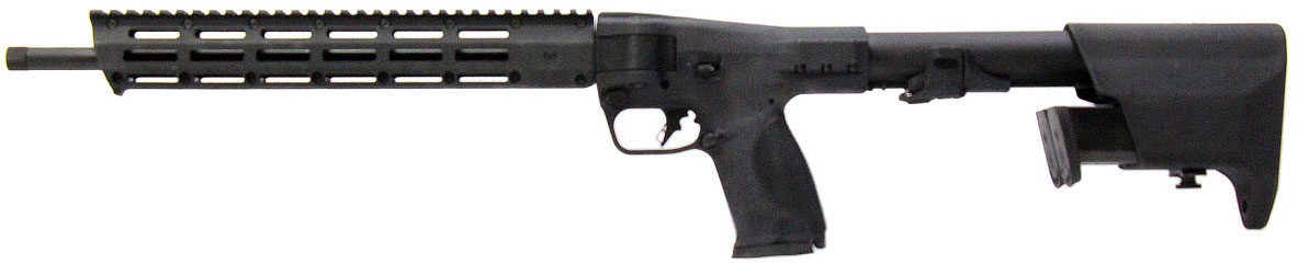 This is a used Smith & Wesson FPC10 carbine chambered in 10mm. It features a 16-inch threaded barrel, 15-round magazines, cross-bolt safety, horizontal folding mechanism, and M-LOK handguard. Includes carrying case, three 15-round magazines, sling, and backstrap set. Overall, this carbine is in good condition with handling wear on the handguard and buffer tube. This would be a good choice for recreational target shooting. Buy online today!