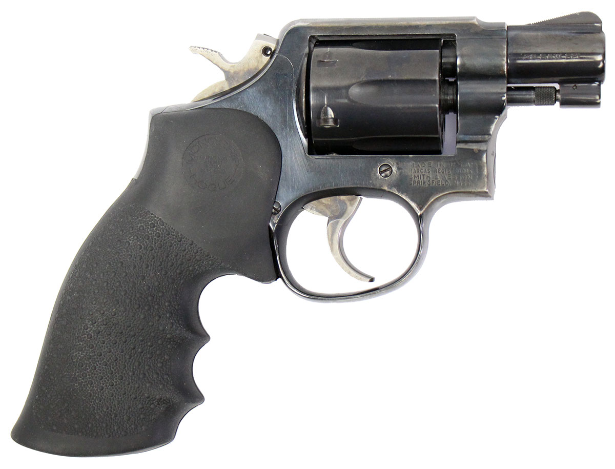 This is a used Smith & Wesson Model 10-8 revolver chambered in 38 Special. It features a 2-inch barrel, 6-round cylinder, fixed sights, no internal lock, blued finish, and rubber grips. Overall, this Smith is in good condition with normal cylinder draglines. The frame has some pitting on the right side forward of the trigger guard. This would be a good choice for home defense. Buy online today!