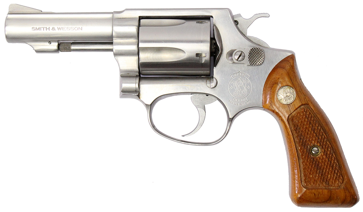 This is a used Smith & Wesson Model 60 revolver chambered in 38 Special. It features a 3-inch barrel, 5-round cylinder, stainless finish, and checkered wood grips with Smith & Wesson medallions. Overall, this Smith is in good condition with normal cylinder draglines. This would be a good choice for Smith & Wesson collectors. Buy online today!