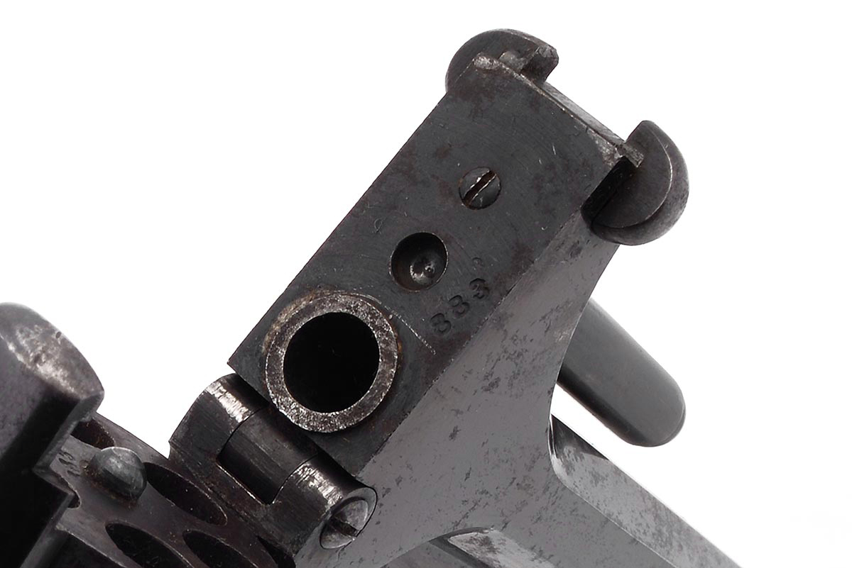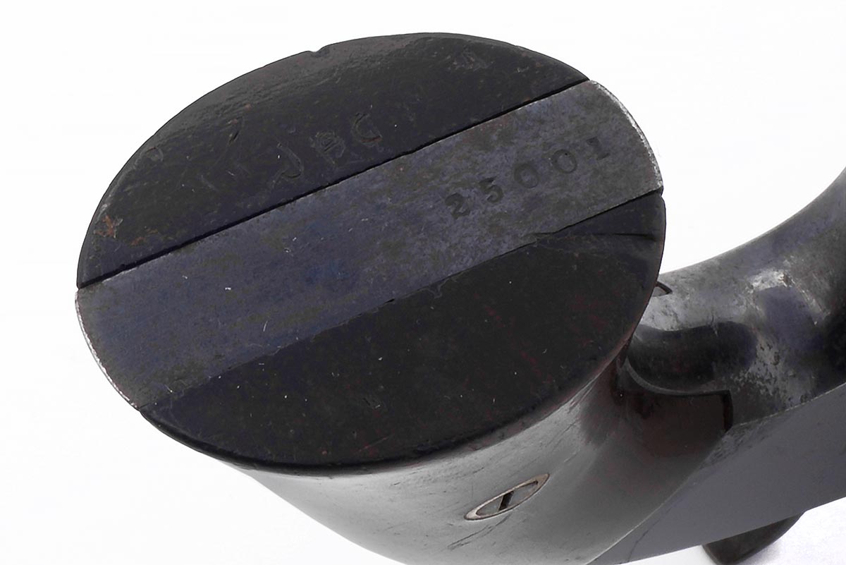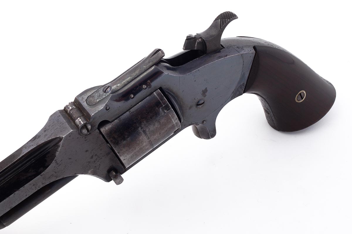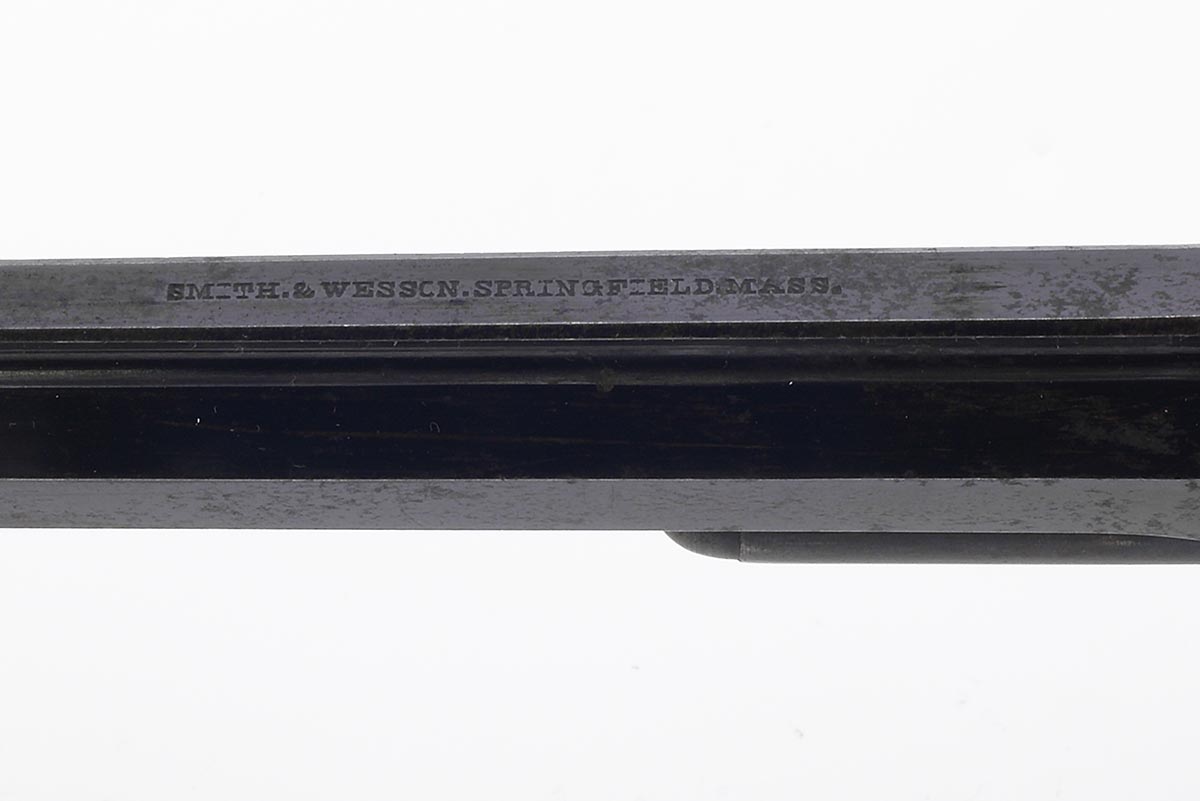 This is a US Civil War-era Smith & Wesson Model No. 2 Army revolver hambered in .32 Rimfire. It features a 6-inch barrel with top-break design, blued finish, all matching numbers and a 6-round cylinder. The serial number places the date of manufacture to 1864. Smith began shipping these type of revolvers just two months after the beginning of the American Civil War. The company continued to leverage its patent well beyond the war and these guns remained popular on the frontiers. There were 77,200 of these revolvers made from 1861 through 1874. Revolvers with serial numbers under 35,731 are considered to be Civil War guns since they were manufactured before May 1, 1865. During the Civil War, Kentucky purchased 700 of these revolvers from the arms dealer B. Kittredge & Company and issued them to the 7th Regiment Kentucky Volunteer Cavalry. Notables who carried the Model 2 Army during the war include George Armstrong Custer, who had a pair of Model 2 Army revolvers. Rutherford B. Hayes, future U.S. President, was also know to carry one. Post-war it was the preferred revolver for "Wild Bill" Hickok; he was carrying a Model 2 Army the night he was shot and killed in 1874. This example is in very good condition for being 162 years old. Much of the original bright bluing remains with very modest patina and spots of surface rust. The bore is bright and shiny with strong rifling, there are a few areas of light pitting. Mechanically everything works well with a strong hammer spring, fine timing and good lockup. This would be a great addition to any Civil War, Smith & Wesson or antique revolver collection. Buy online today!