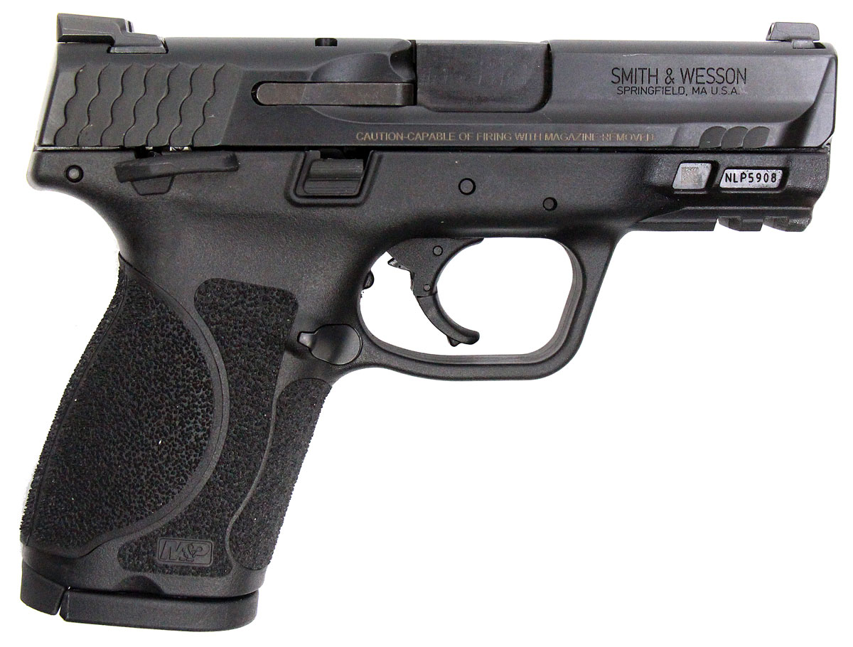 This is a used Smith & Wesson M&P 9 Compact M2.0 pistol chambered in 9mm. It features a 3.6-inch barrel, 15-round magazine, ambidextrous thumb safety, night sights, and accessory rail. Overall, this Smith is in good condition with normal use wear on the barrel and slide. This would be a good choice for home defense or concealed carry. Buy online today!