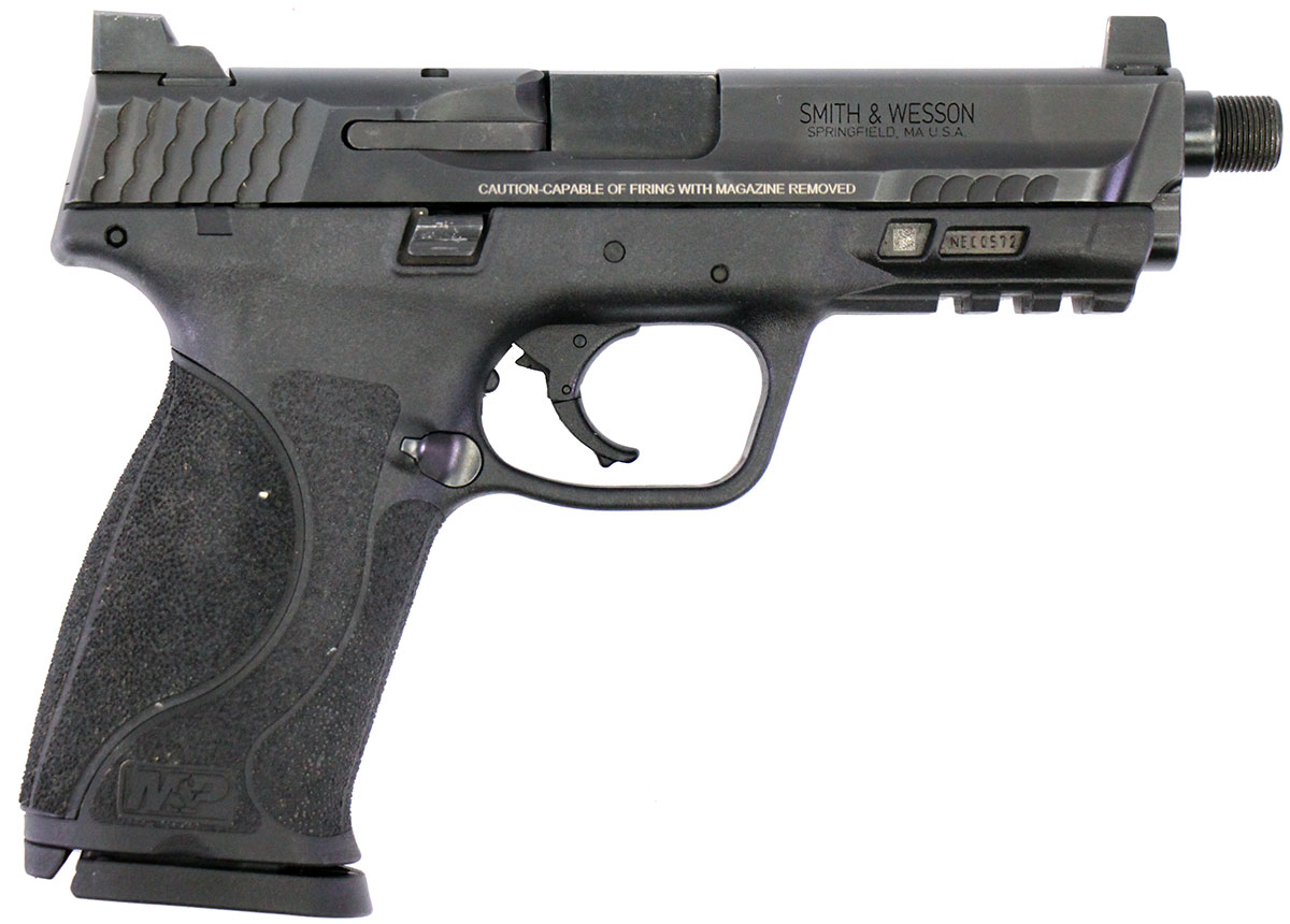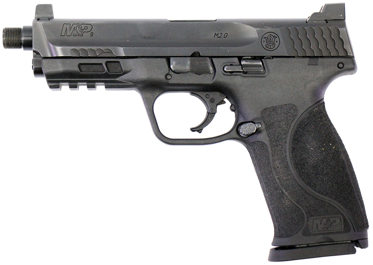This is a used Smith & Wesson M&P 9 M2.0 pistol chambered in 9mm. It features a 4.75-inch threaded barrel, 17-round magazine, suppressor height sights, and accessory rail. Overall, this Smith is in good condition with normal wear on the slide and barrel. This would be a good choice for home defense. Buy online today!