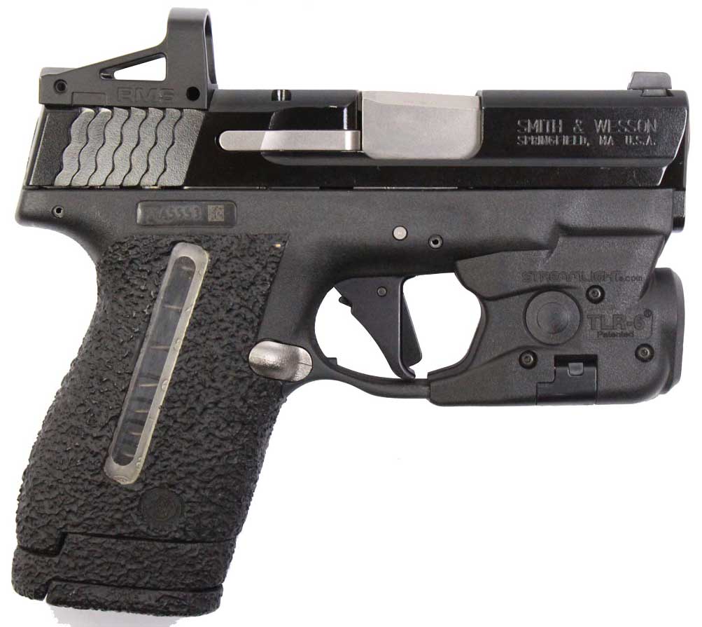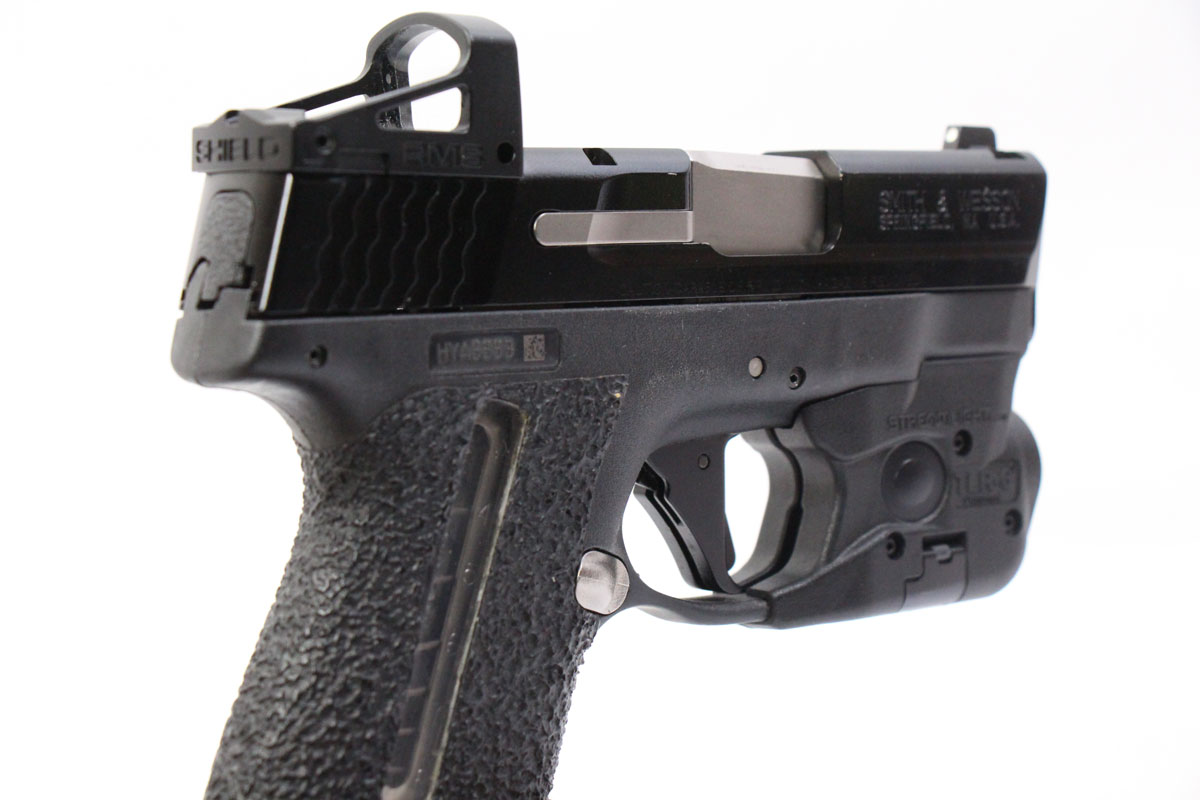 This is a used Smith & Wesson M&P 9 Shield pistol chambered in 9mm. It features a 3-inch barrel, 8-round magazine, thumb safety, Apex trigger, Streamlight TLR-6 light with red laser, Shield RMS red dot, and see-through Lexan grip panels. Overall, this Smith is in good condition with normal use wear on the slide and barrel. This would be a good choice for concealed carry. Buy online today!