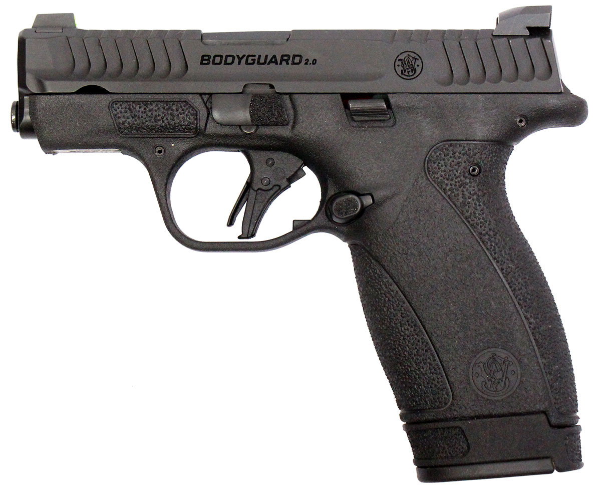 This is a used Smith & Wesson M&P Bodyguard 2.0 pistol chambered in 380 ACP. It features a 2.75-inch barrel, 12-round magazine, and night sights. Includes factory box, instruction manual, one 10-round magazine, and one 12-round magazine. Overall, this Smith is in good condition with normal use wear on the slide and barrel. This would be a good choice for concealed carry. Buy online today!