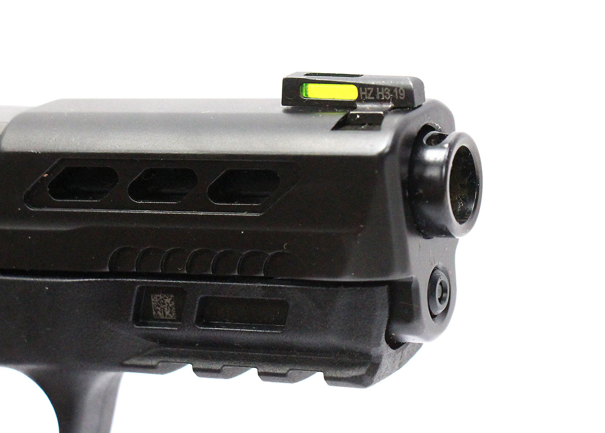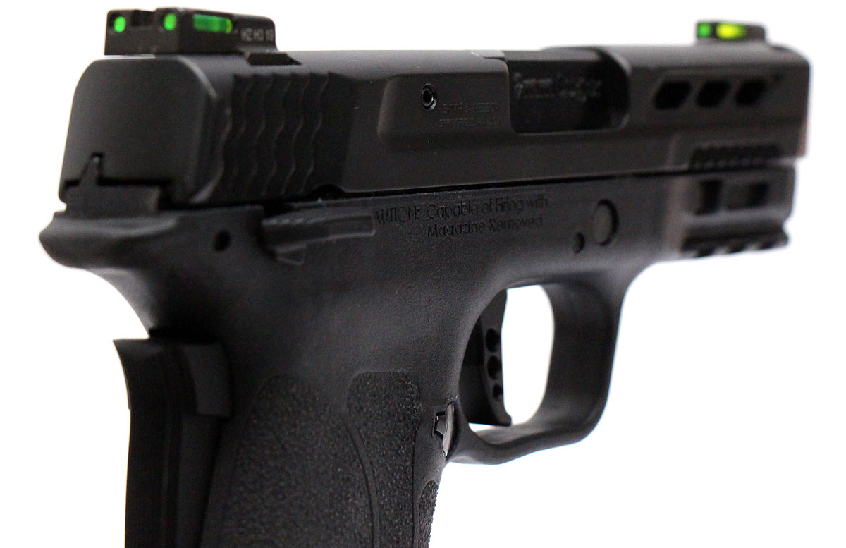This is a used Smith & Wesson Performance Center M&P 9 Shield EZ pistol chambered in 9mm. It features a 3.8-inch ported barrel, 8-round magazine, fiber optic sights, grip safety, ambidextrous thumb safety, and accessory rail. Overall, this Smith is in good condition with normal wear on the slide and barrel. This would be a good choice for concealed carry. Buy online today!