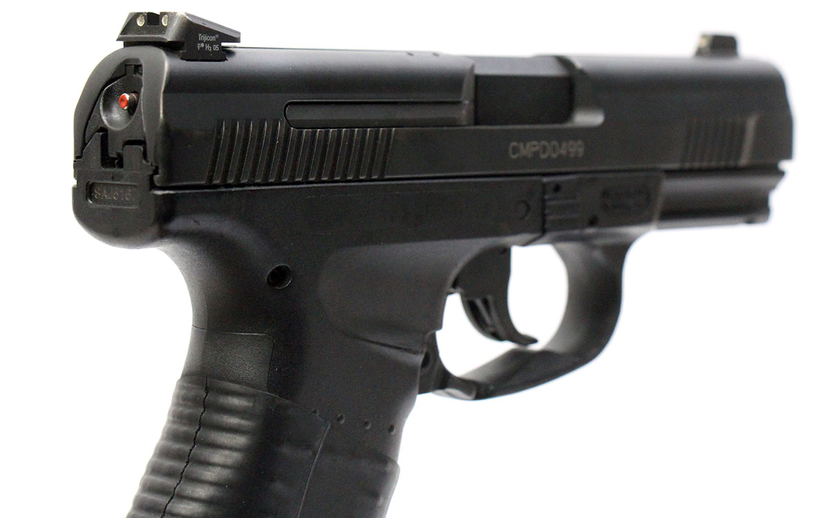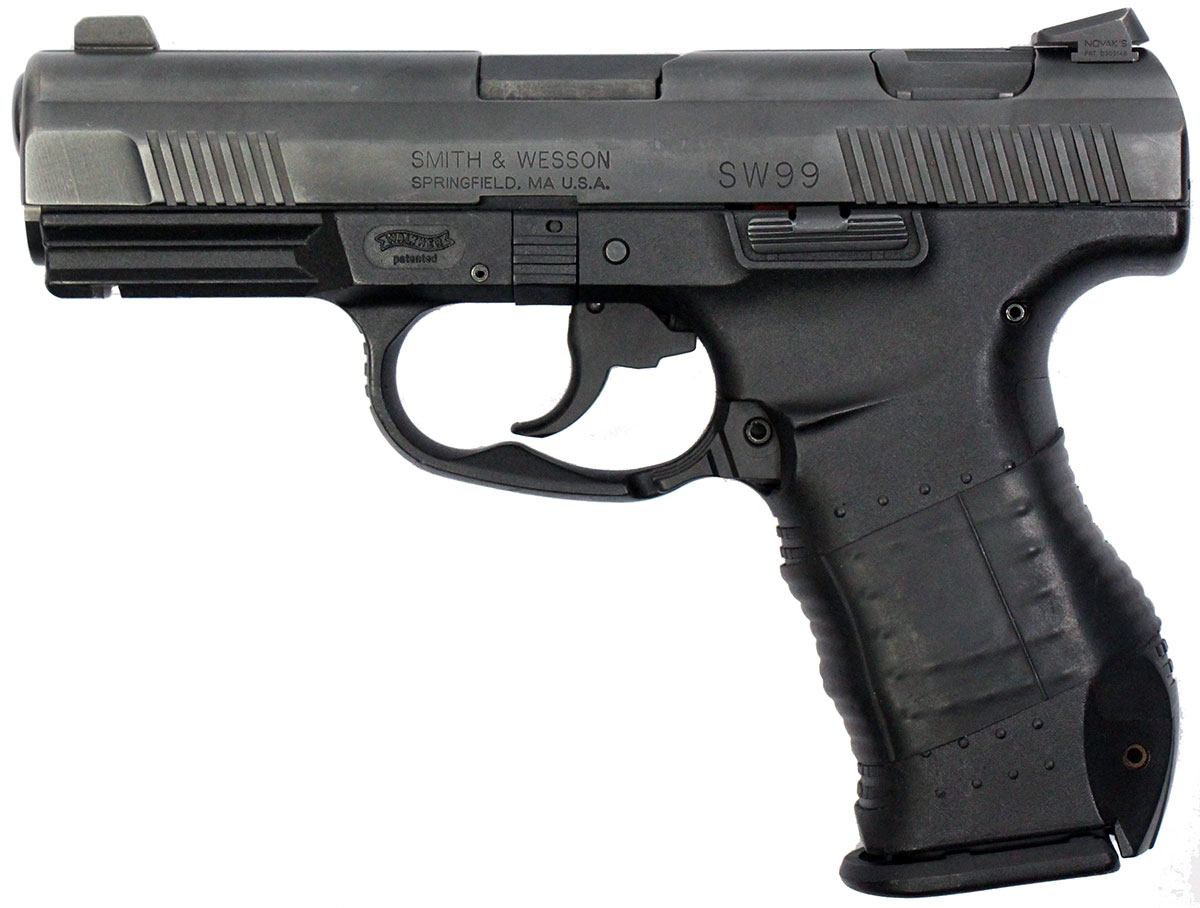 This is a used Smith & Wesson SW99 pistol chambered in 40 Smith & Wesson. It features a 4.125-inch barrel, 12-round magazines, fixed sights, decocker, cocking indicator, and accessory rail. Includes factory box, manual, and three magazines. Overall, this pistol is in good condition with normal use wear on the slide and barrel. The tritium in the night sights are dim due to age. The slide has a Charlotte Mecklenburg Police Department rack number on the right side. This would be a good choice for home defense. Buy online today!