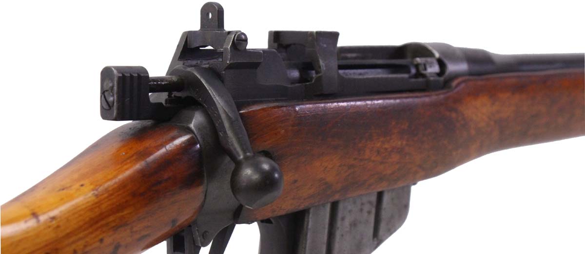 This is a used Sporterized Long Branch Lee Enfield No.4 MK1 rife chambered in 303 British. It features a 25-inch barrel, 10-round detachable magazine, 300-600 meter rear peep sight, and sporterized stock. Overall, this Enfield is in good condition with significant finish wear throughout the barrel and receiver. The stock has handling wear. Bore condition is good with well-defined rifling. The receiver has a 1942 production date. This would be a good choice for hunting. Buy online today!