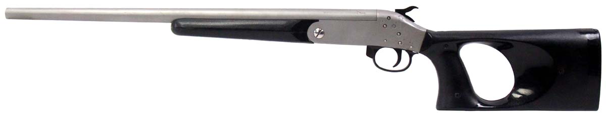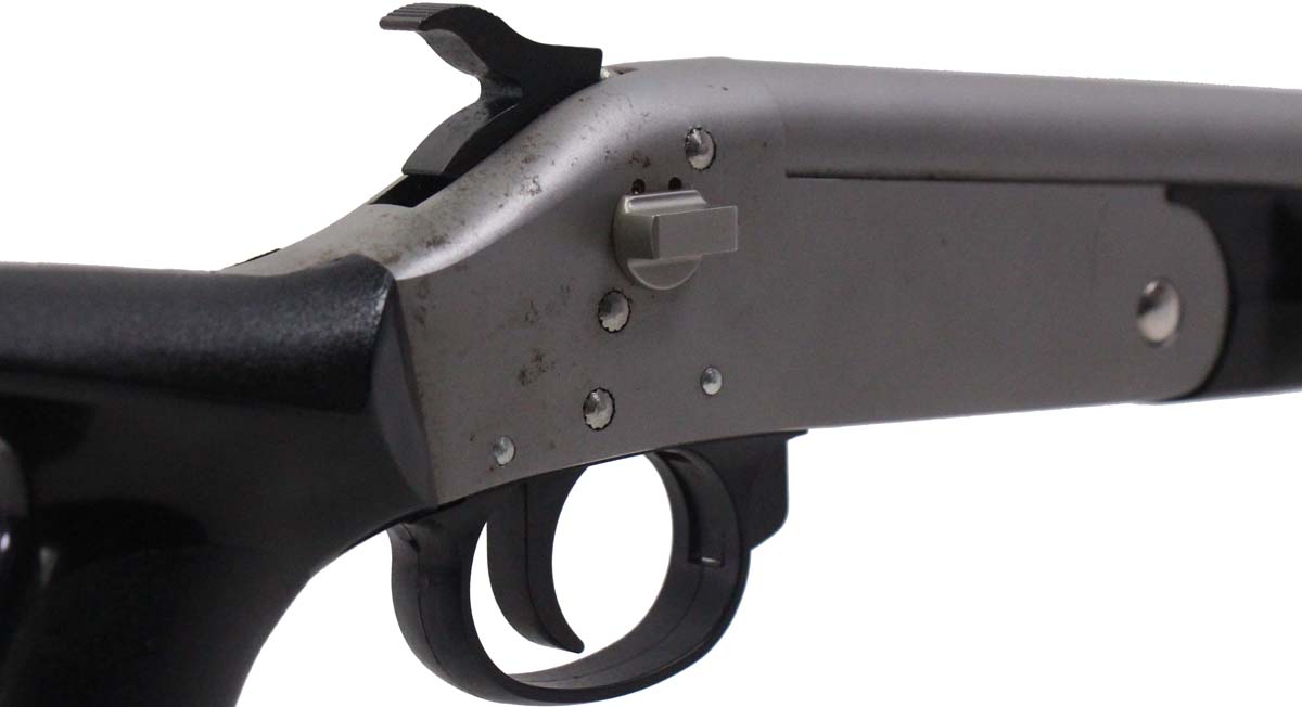 This is a used Sporting Arms Snake Charmer II shotgun chambered in 410 bore. It features an 18.125-inch barrel, 3-inch chamber, single-shot break action, and polymer furniture. Overall, this shotgun is in good condition with some handling wear on the barrel and pitting on the receiver. This would be a good choice for pest control. Buy online today!