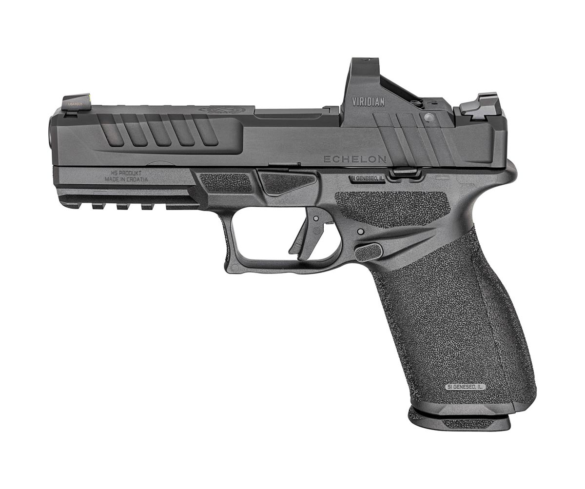 Engineered to merge full-size capacity with a compact slide assembly, the Echelon 4.0FC pairs a 4" barrel with a full-length grip. At its core is Springfield’s Central Operating Group, providing a serialized foundation for modular performance. The Variable Interface System enables direct mount compatibility with a wide range of today's leading optics. Fully ambidextrous and equipped with tritium/luminescent U-Dot sights. Includes red dot, 4 mags and gun case.