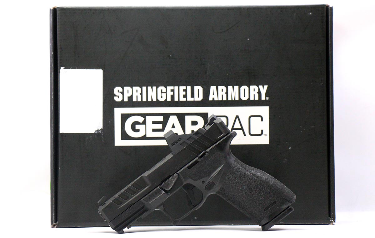This is a used Springfield Armory Echelon pistol chambered in 9mm. It features a 4-inch barrel, 17-round magazines, night sights, Viridian RFX11 green dot sight, and accessory rail. Includes factory box, nylon case, manual, magazine loading tool, backstrap set, three 17-round magazines, and one 20-round magazine. Overall, this Springfield is in good condition with normal wear on the slide and barrel. This would be a good choice for home defense. Buy online today!