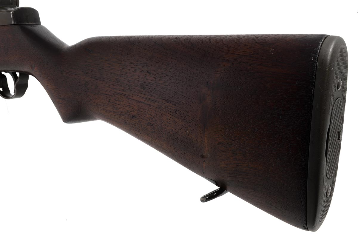 This is a Korean Conflict-Era Springfield Armory US Rifle M1 Garand rifle chambered in 30-06 Springfield. It features a 24-inch barrel, parkerized finish, and uses 8-round en-bloc clips. The serial number places the date of manufacture to 1952, which aligns with the barrel date of 12/52. All marked parts are correct for this rifle, and the stock is appropriately marked with the "SA JLG" (J.L. Gaylord) inspector stamp found on early 1950s M1 stocks in 4.2 million serial range. Overall condition is good with an excellent bore and chamber in the white. There is some wear to the metal finish and the wood has a few scuffs, scratches, chips, dings and pressure marks. This would make a great addition to a Cold War-era military firearms collection. Buy online today!
