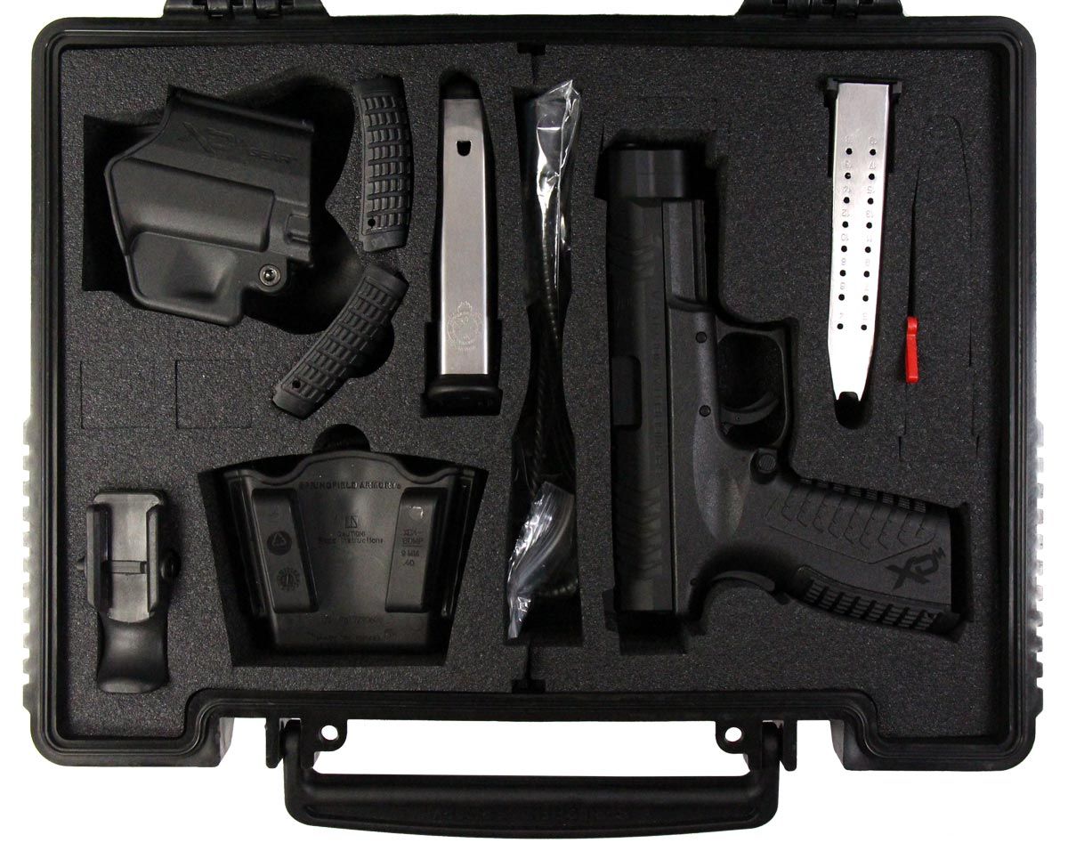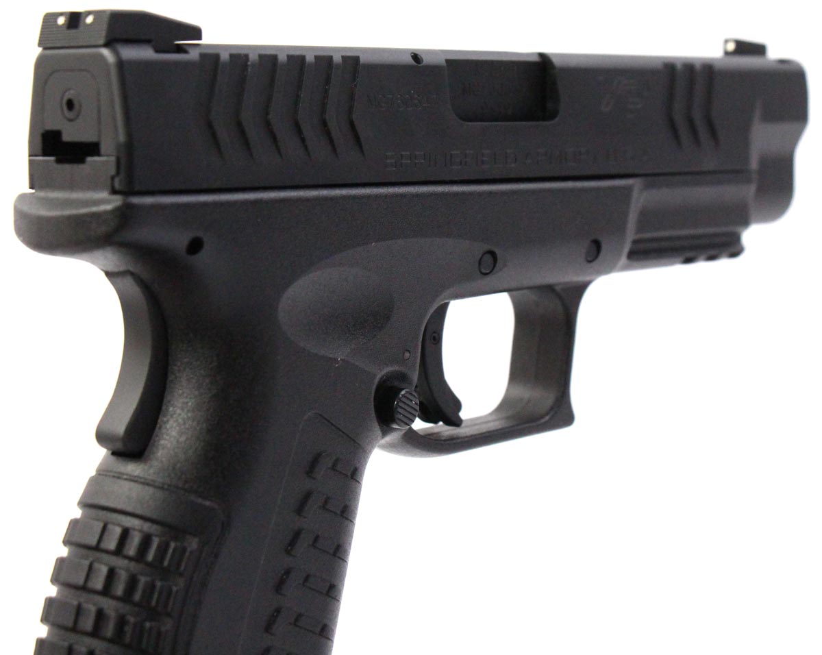 This is a used Springfield Armory XDM 9 pistol chambered in 9mm. It features a 4.5-inch barrel, 19-round magazines, fixed sights, grip safety, and accessory rail. Includes factory box, manual, two magazines, right-handed paddle holster, magazine loading tool, magazine carrier, cleaning rod, and backstrap set. Overall, this pistol is in good condition with normal wear on the slide and barrel. This would be a good choice for home defense. Buy online today!