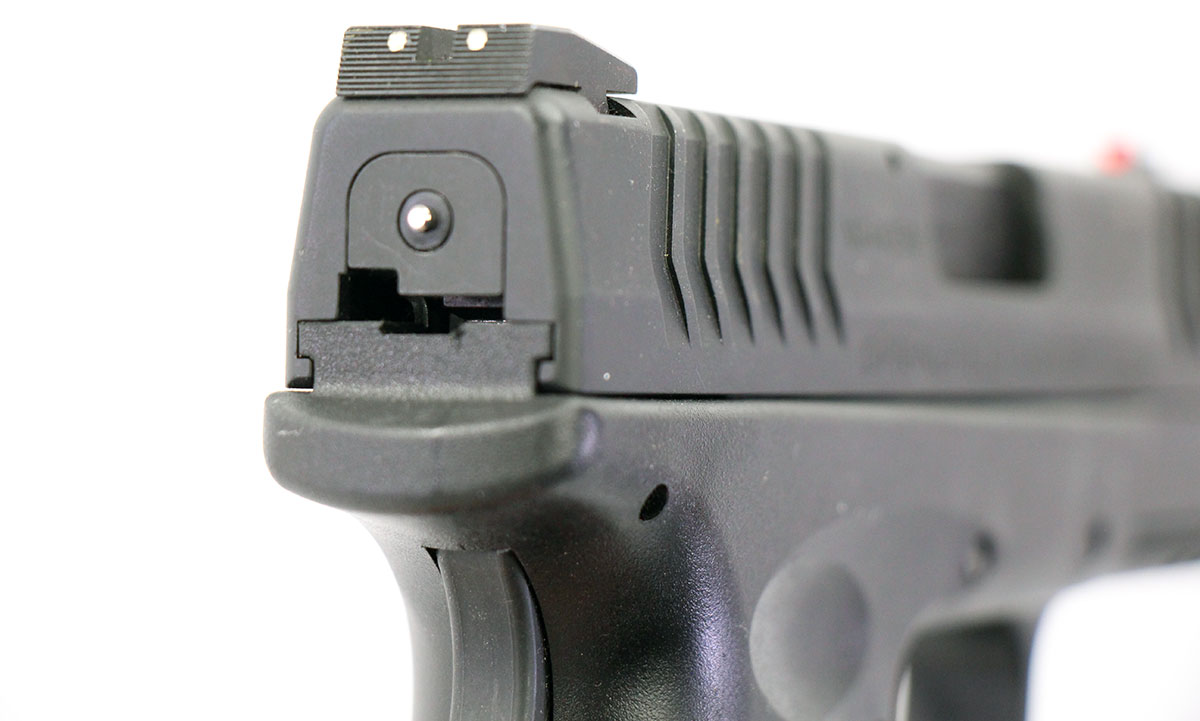 This is a used Springfield Armory XDm Compact pistol chambered in 9mm. It features a 3.8-inch barrel, 19-round magazine, fiber optic front sight, grip safety, and accessory rail. Overall, this Springfield is in good condition with normal use wear on the slide and barrel. This would be a good choice for self defense. Buy online today!