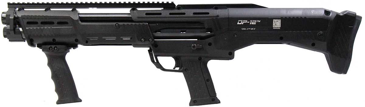 This is a used Standard Manufacturing DP-12 shotgun chambered in 12 gauge. It features 19-inch barrels, 3-inch chambers, screw-in improved cylinder bore chokes, ambidextrous safety, and picatinny optic rail. Includes factory box and manual. Overall, this shotgun is in good condition with normal use wear on the magazine tubes and handling wear on the receiver. This would be a good choice for home defense. Buy online today!