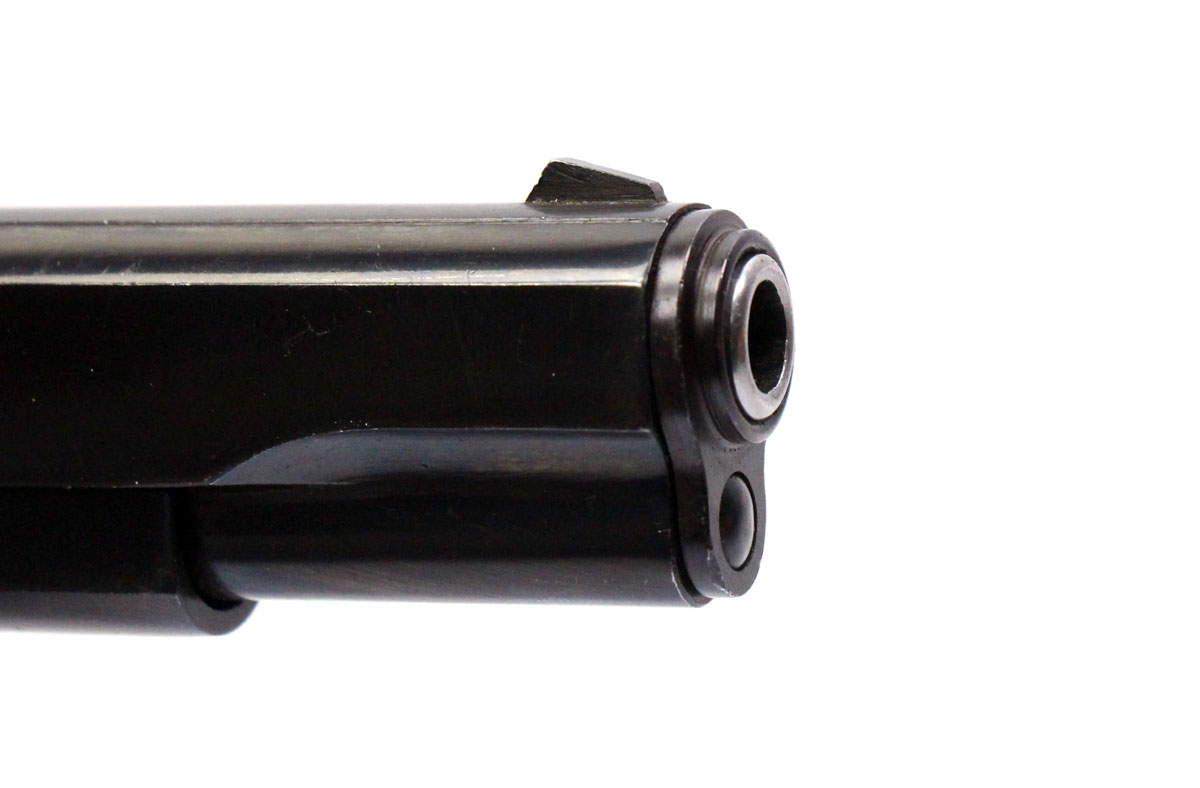 This is a vintage Star Model Super B pistol chambered in 9mm. It features a 5-inch barrel, 8-round magazine, thumb safety, fixed sights, blued finish, and plastic grips. Overall, this Star is in good condition with normal wear on the barrel, slide, and frame. This would be a good choice for military surplus collecting. Buy online today!