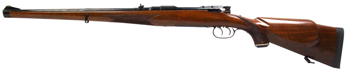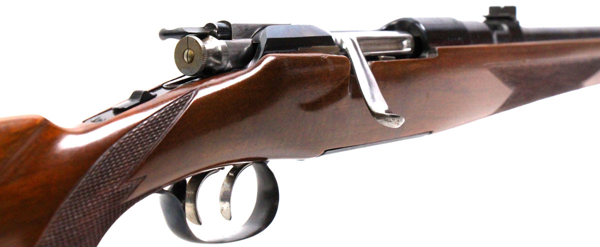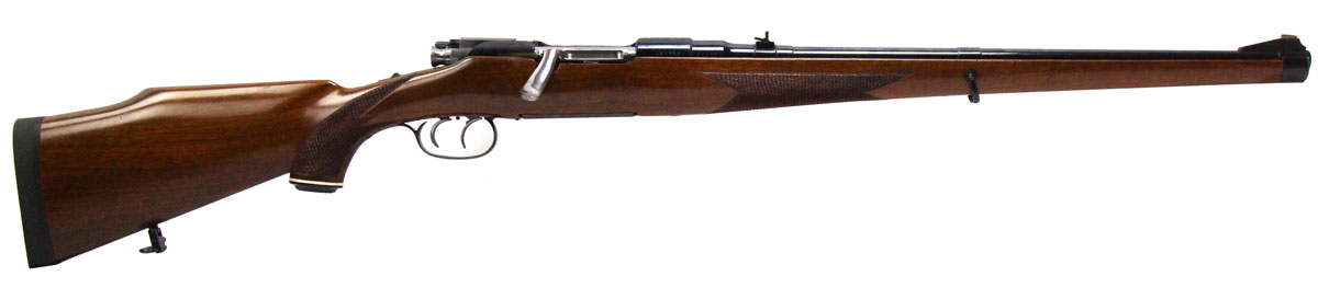 This is a used Steyr Mannlicher MCA rifle chambered in 308 Winchester. It features a 20-inch barrel, 5-round capacity, sling swivels, drilled and tapped receiver, full-length Mannlicher walnut stock, blued finish, tang safety, Kick-Eez recoil pad, and set trigger. Overall, this rifle is in good condition with handling wear on the stock. Bore condition is good with crisp rifling. The receiver is has a 1968 production date. This would be a good choice for hunting. Buy online today!