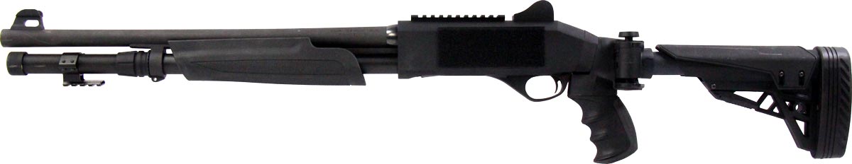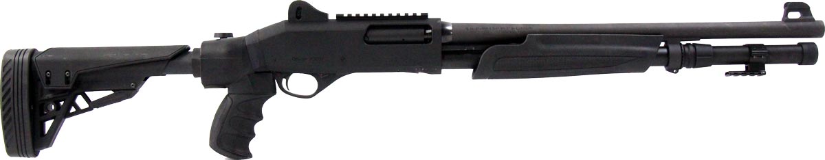 This is a used Stoeger P3000 shotgun chambered in 12 gauge. It features an 18.5-inch barrel, 3-inch chamber, fixed cylinder bore choke, ghost ring sights, cross-bolt safety, and collapsible stock. Overall, this shotgun is in good condition with some handling wear on the barrel and receiver. This would be a good choice for home defense. Buy online today!