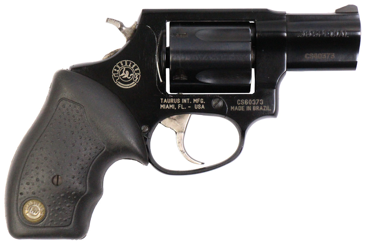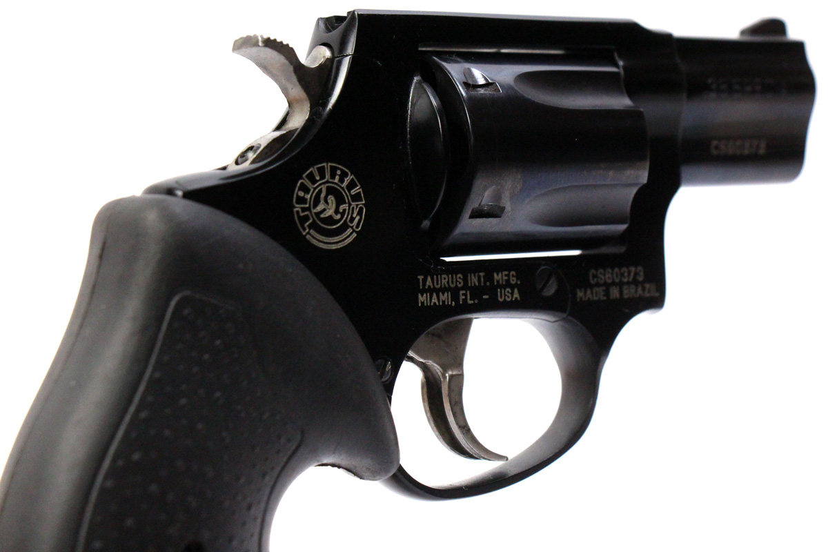 This is a used Taurus 85 Ultra Lite revolver chambered in 38 Special. It features a 2-inch barrel, 6-round cylinder, blued finish, and rubber grips. Overall, this Taurus is in good condition with normal use cylinder turn lines. This would be a good choice for concealed carry. Buy online today!