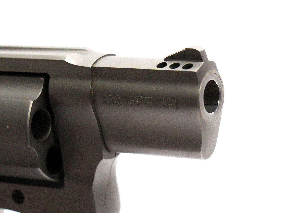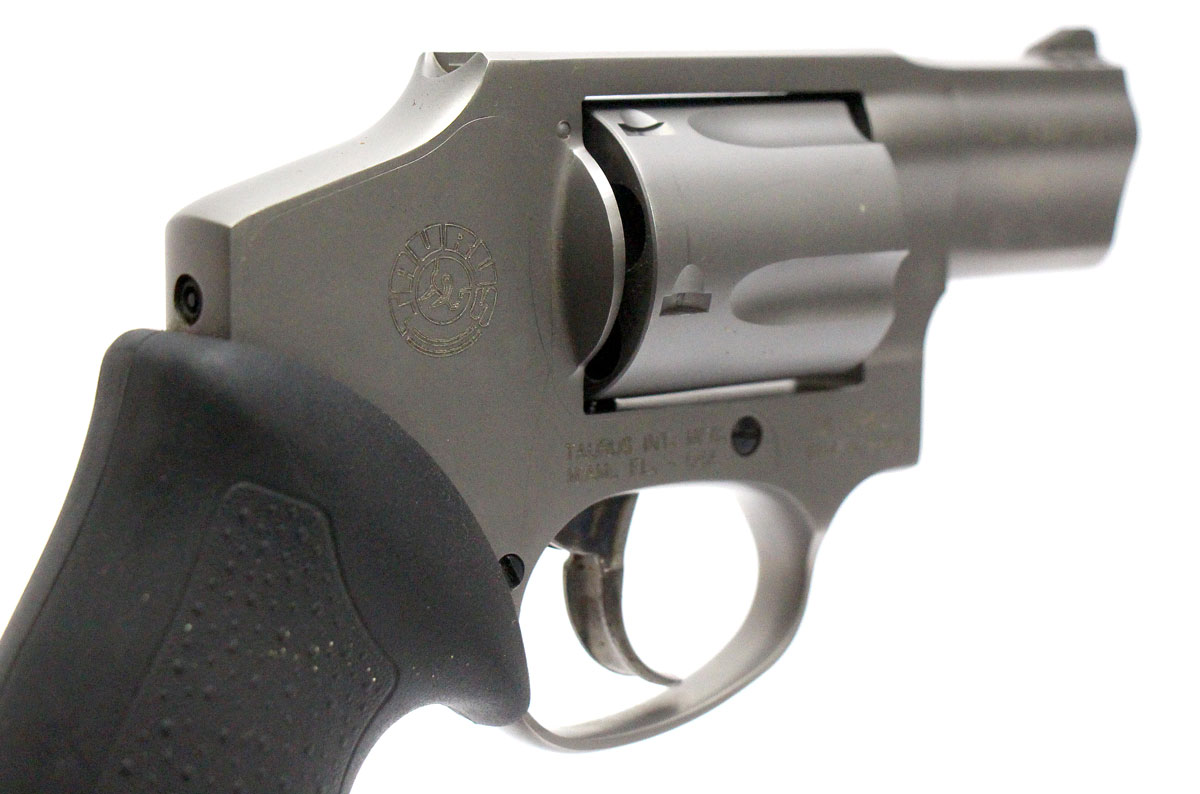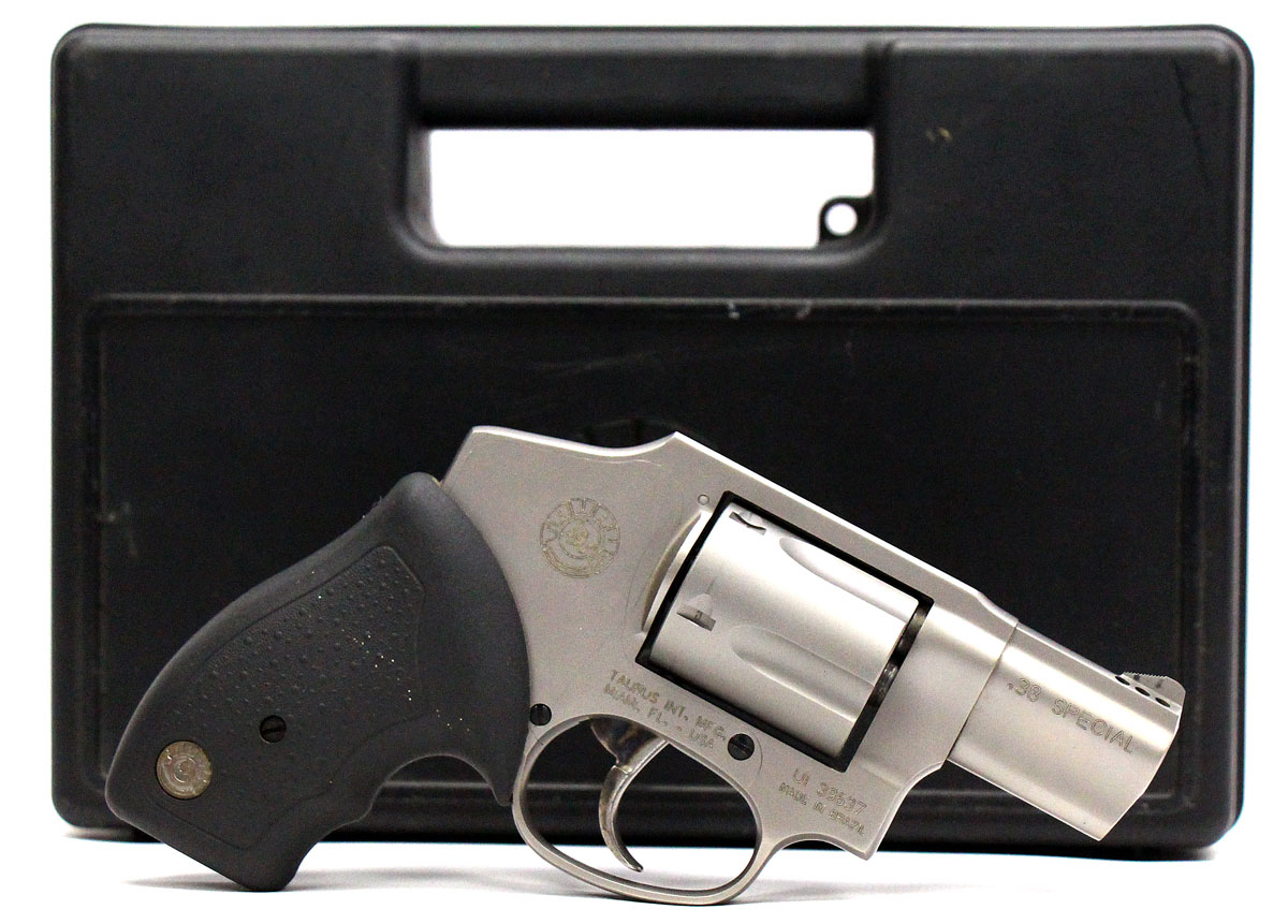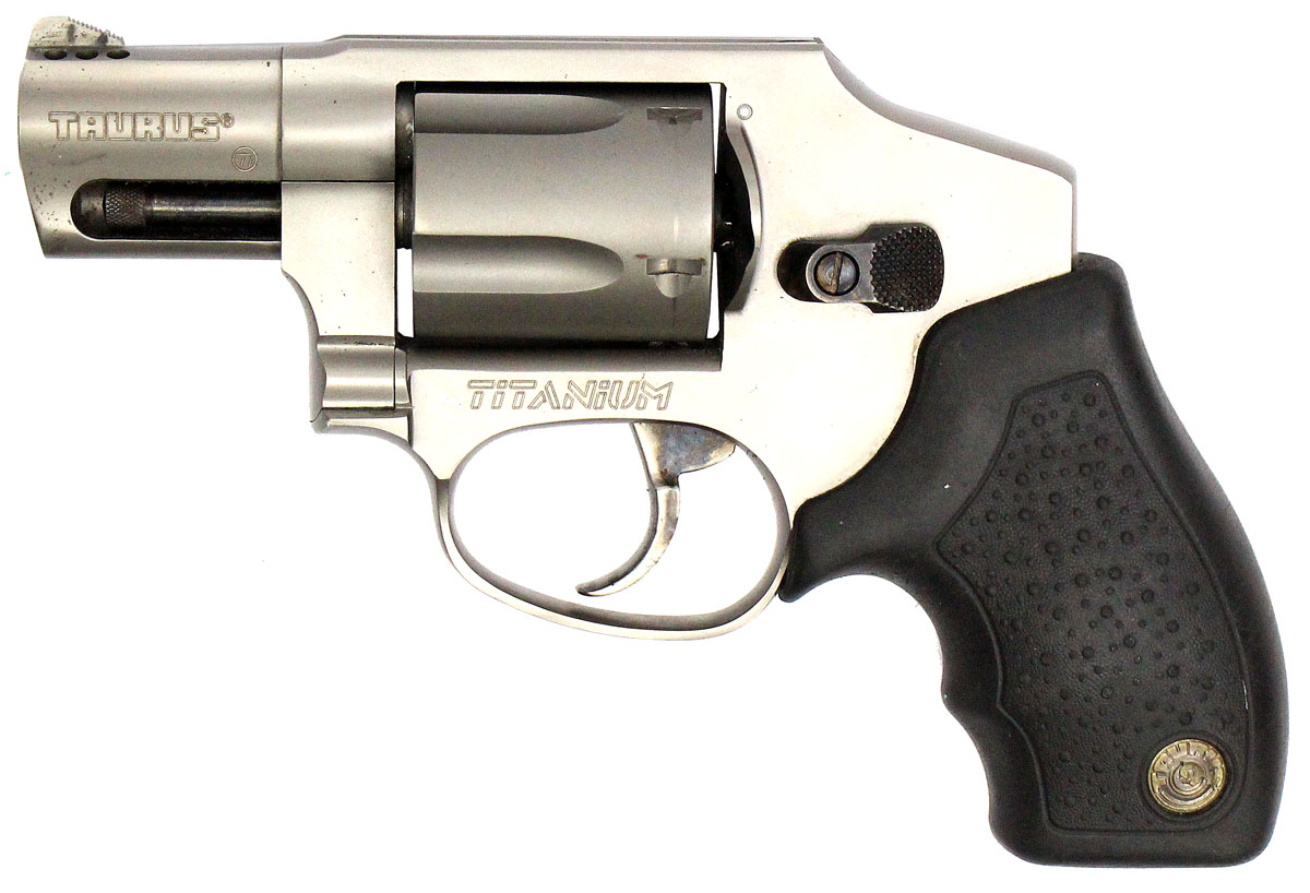 This is a used Taurus 850 revolver chambered in 38 Special. It features a 2-inch ported barrel, 5-round cylinder, titanium frame, and rubber grips. Includes factory box and manual. Overall, this revolver is in good condition with normal use cylinder turn lines. This would be a good choice for concealed carry. Buy online today!