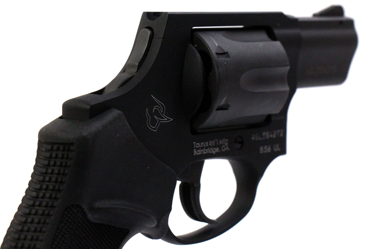 This is a used Taurus 856 Ultra Lite revolver chambered in 38 Special. It features a 2-inch barrel, 6-round cylinder, matte black finish, bobbed hammer, double-action-only trigger, and rubber grips. Overall, this Taurus is in good condition with normal use cylinder turn lines. This would be a good choice for concealed carry. Buy online today!