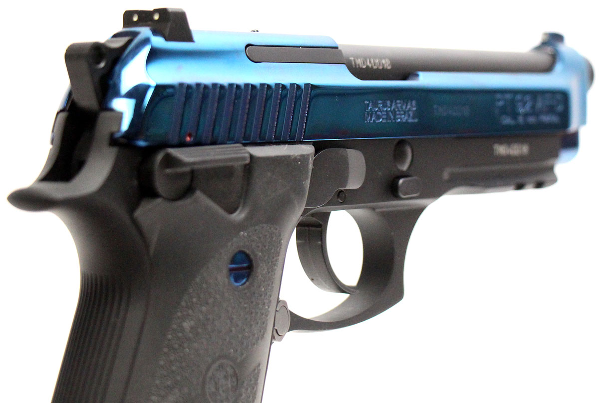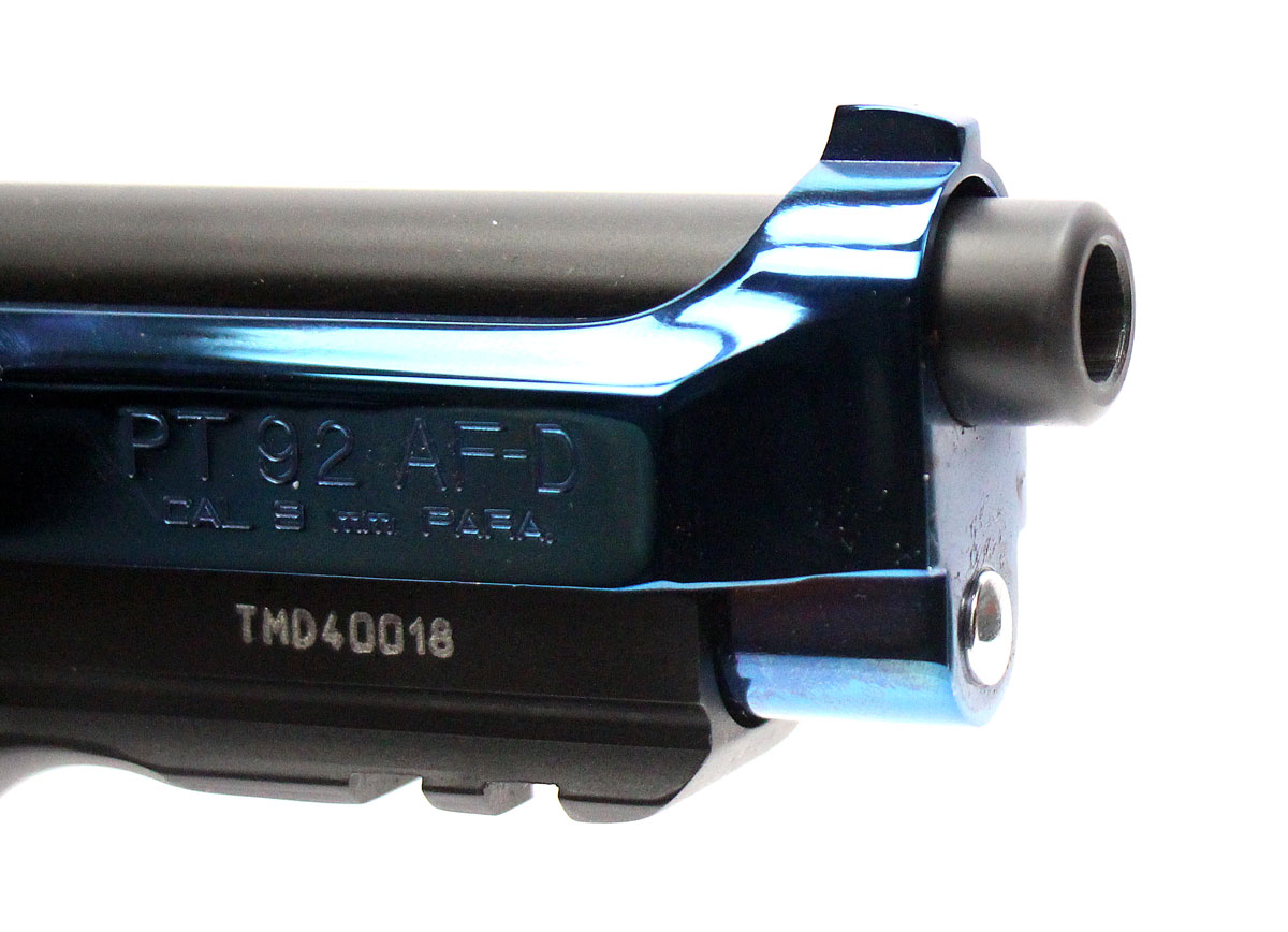 This is a used Taurus PT92 AFD pistol chambered in 9mm. It features a 4.9-inch barrel, one 17-round magazine, ambidextrous thumb safety/decocker, accessory rail, blue PVD slide, rubber grips, and fixed sights. Overall, this Taurus is in good condition with normal wear on the slide and barrel. This would be a good choice for home defense. Buy online today!
