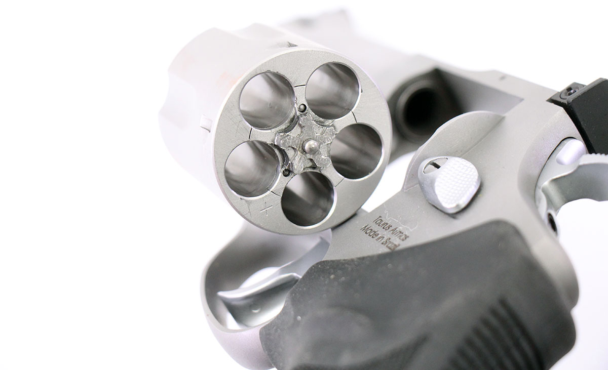 This is a used Taurus Tracker Model 44 revolver chambered in 44 Magnum. It features a 4-inch ported barrel, 5-round cylinder, orange ramp front sight, adjustable rear sight, internal lock, rubber grips, and stainless finish. Includes factory box and internal lock keys. Overall, this Taurus is in good condition with normal cylinder draglines. This would be a good choice for target shooting or self defense. Buy online today!