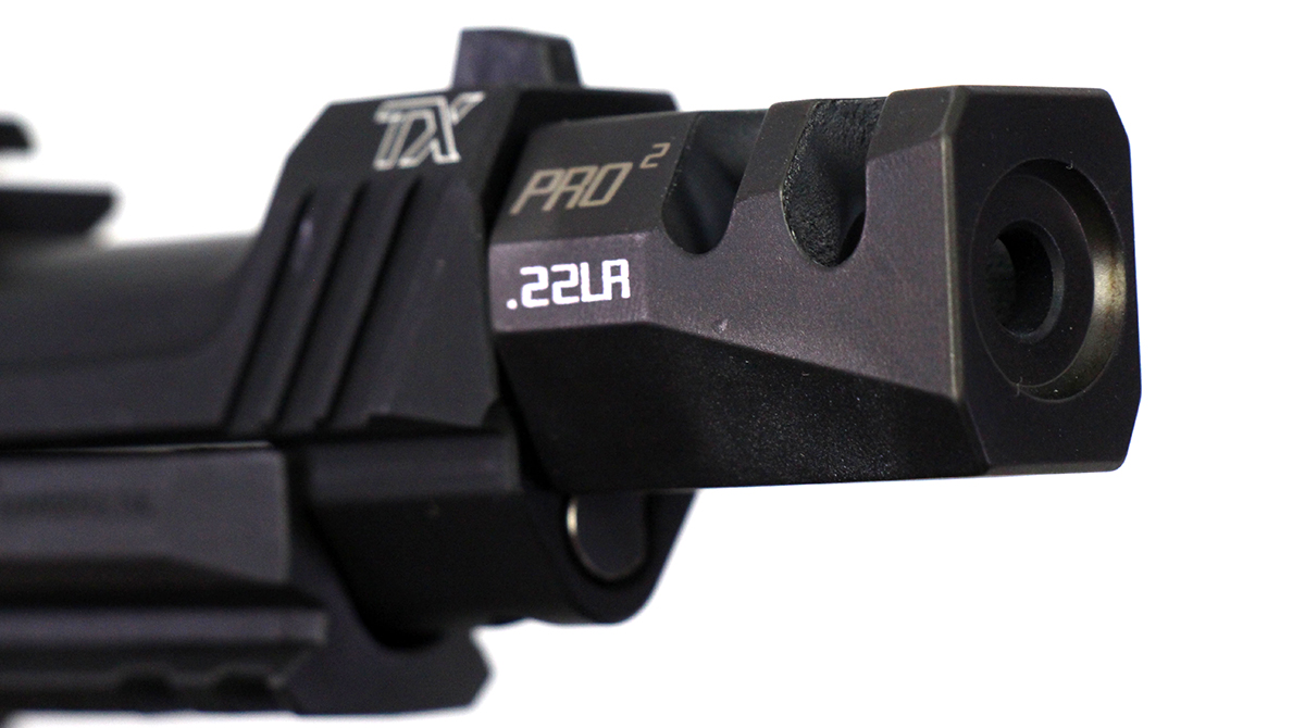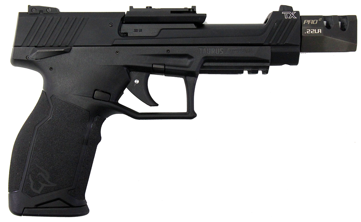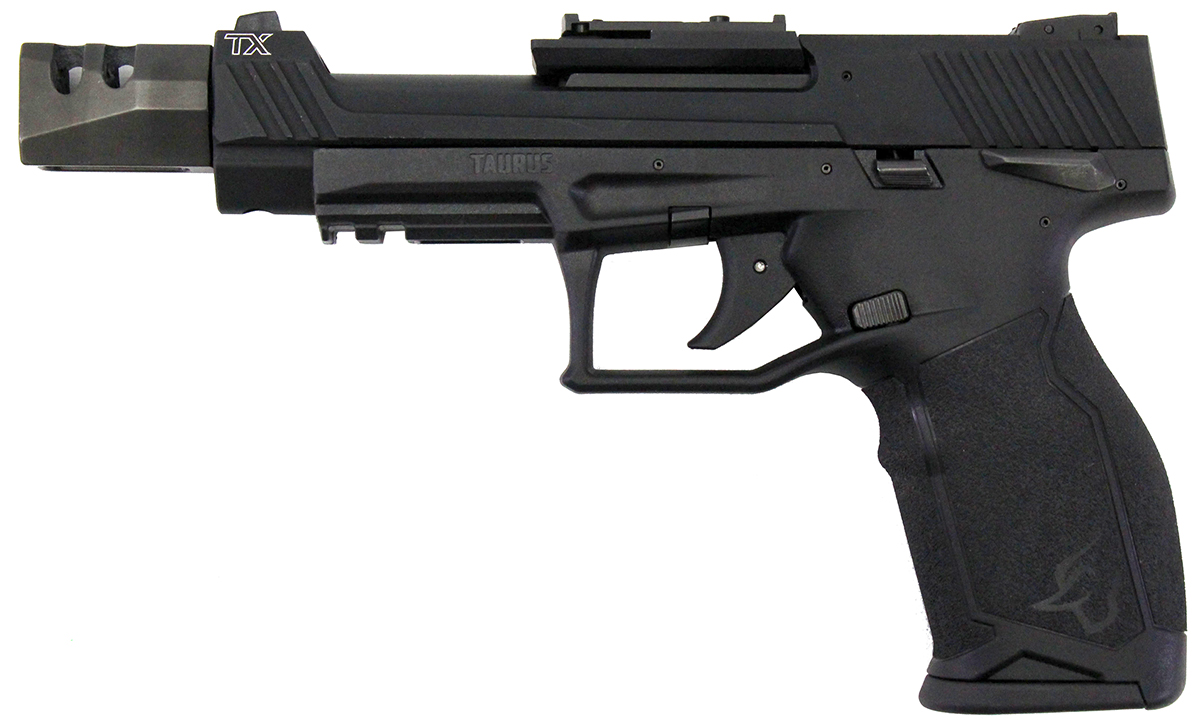 This is a used Taurus TX22 Competition pistol chambered in 22 Long Rifle. It features a 5-inch barrel, 16-round magazine, Tandem Kross compensator, optics ready slide, accessory rail, and ambidextrous thumb safety. Includes factory box, instruction manual, and three magazines. Overall, this Taurus is in good condition with normal wear on the slide and barrel. This would be a good choice for target shooting. Buy online today!