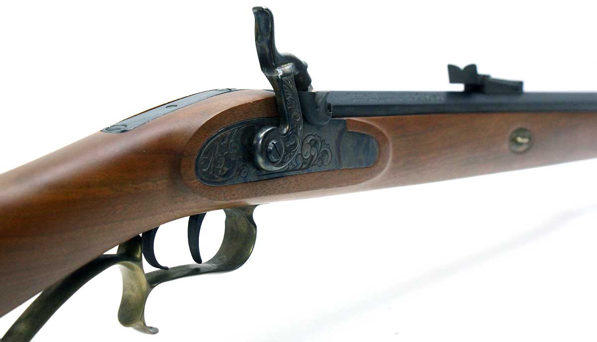 This is a used Thompson Center Hawken muzzleloader chambered for 50 caliber projectiles. It features a 28-inch octagonal barrel, percussion ignition system, set trigger, adjustable rear sight, dovetail front sight, and blued finish. Overall, this muzzleloader is in good condition with some handling wear on the stock. Bore condition is good with strong rifling. This would be a good choice for hunting. Buy online today!
