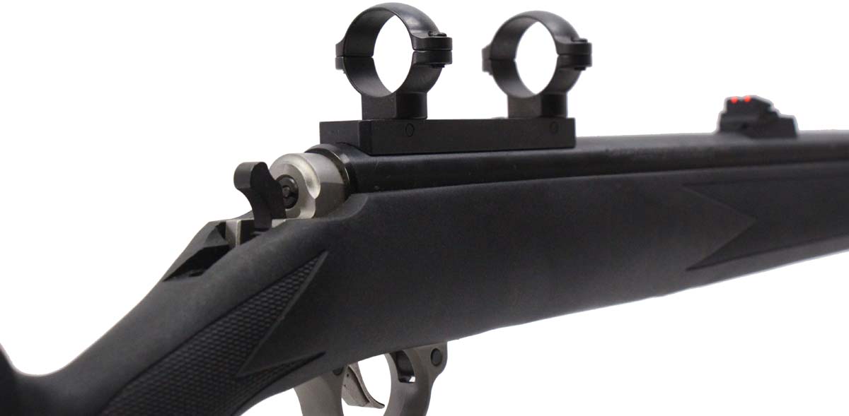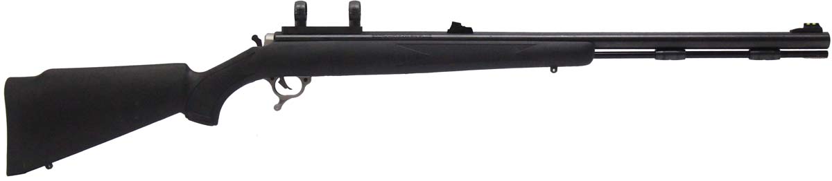 This is a used Thompson Center Omega Z5 muzzleloader chambered for 50 caliber projectiles. It features a 28-inch barrel, in-line 209 primer ignition system, fiber optic sights, 1-inch scope rings, and polymer stock. Overall, this muzzleloader is in good condition with some handling wear on the stock and barrel. Bore condition is good with crisp rifling. This would be a good choice for hunting. Buy online today!
