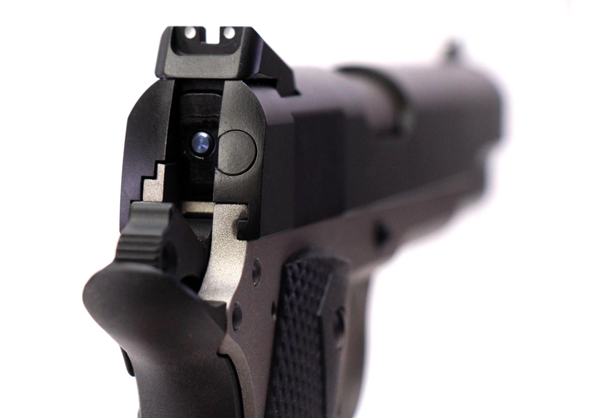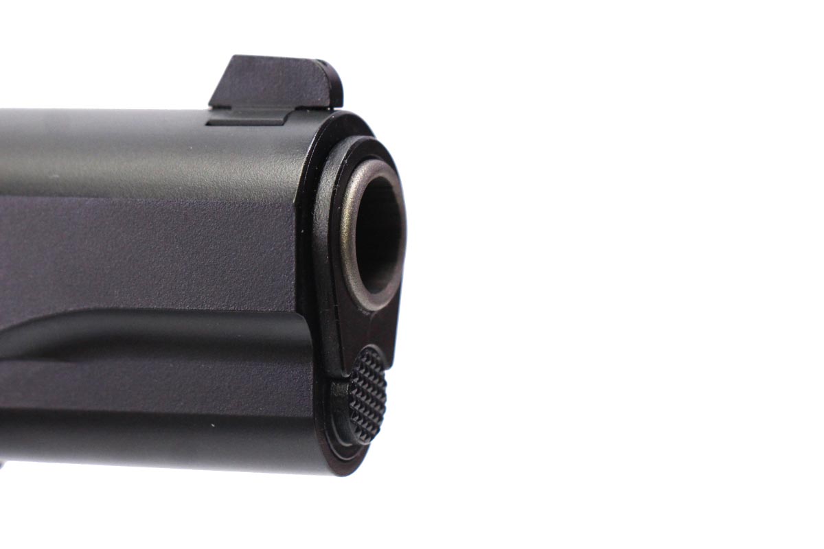 This is a used Tisas 1911A1 Service Enhanced pistol chambered in 45 ACP. It features a 5-inch barrel, 8-round magazines, grip safety, thumb safety, fixed sights, Cerakote finish, series 70 fire control group, and rubber grips. Includes factory box, manual, two magazines, cleaning brush, and bushing wrench. Overall, this pistol is in good condition with normal use wear on the slide and barrel. This would be a good choice for home defense. Buy online today!