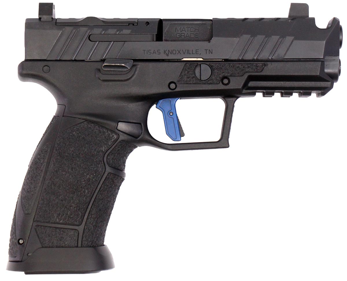 This is a used Tisas PX-9 Gen3 pistol chambered in 9mm. It features a 4-inch ported barrel, 18-round magazine, tritium front sight, optics ready slide, flared magwell, and accessory rail. Includes factory box (missing handle), instruction manual, cleaning brush, one 18-round magazine, one 20-round magazine, magazine loading tool, and backstrap set. Overall, this pistol is in good condition with normal wear on the slide and barrel. This would be a good choice for home defense. Buy online today!
