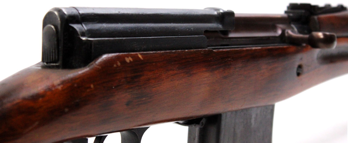 This is a vintage WW2 Tula SVT-40 rifle chambered in 7.62x54R. It features a 24.6-inch barrel, 10-round detachable magazine, 6-port muzzle brake, cleaning rod, bayonet lug, hooded front sight, and tangent rear sight. Overall, this rifle is in good condition with some handling wear on the stock. Bore condition is good with dark and strong rifling. The receiver has CDI import marks. The receiver ring features a Tula Arsenal proof and a 1941 date. The receiver, charging handle, trigger guard, and stock have matching serial numbers. The magazine is mismatched. This would be a good choice for military surplus collecting. Buy online today!