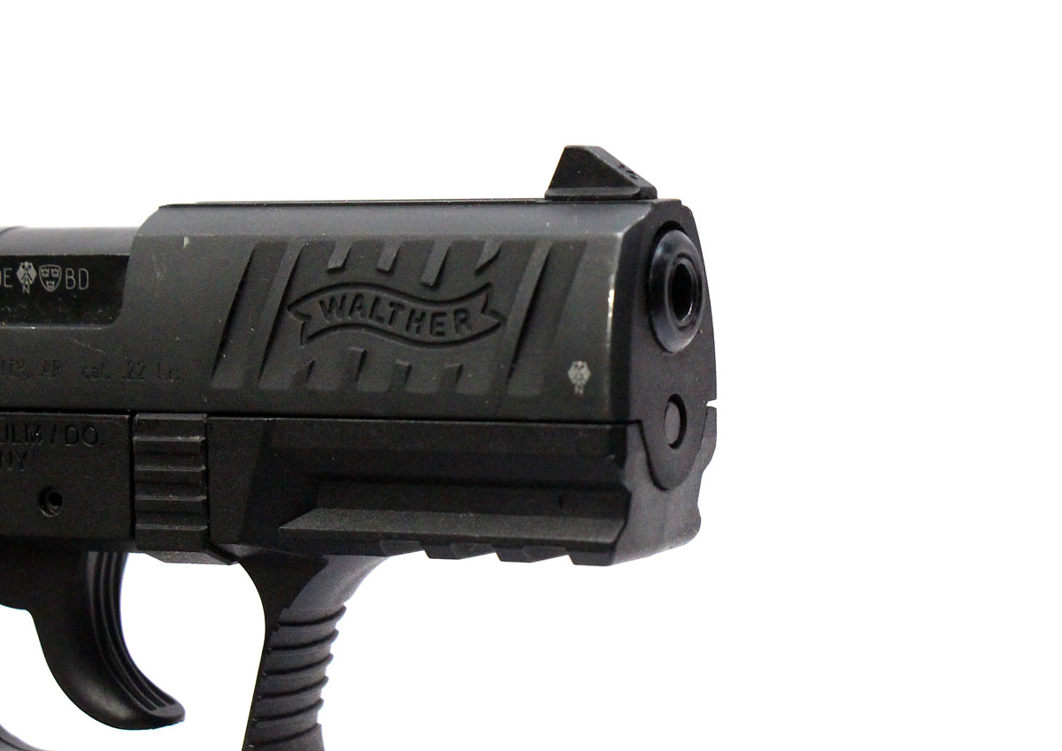This is a used Walther P22 pistol chambered in 22 Long Rifle. It features a 3.42-inch barrel, 10-round magazine, ambidextrous safety, magazine disconnect safety, and accessory rail. Overall, this Walther is in good condition with with normal wear on the barrel and slide. This would be a good choice for target shooting. Buy online today!